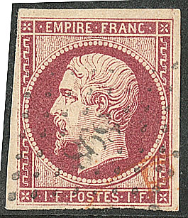 DENTELE. *No 18, carmin, très frais. - TB. - RRR (cote Yvert : 9000€) (Image) (Image2)
