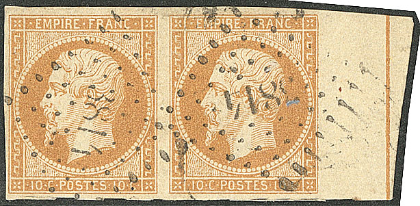 DENTELE. Filet d'encadrement. No 13Ad, paire bdf, obl pc 3814. - TB (cote Yvert : 970€) (Image)