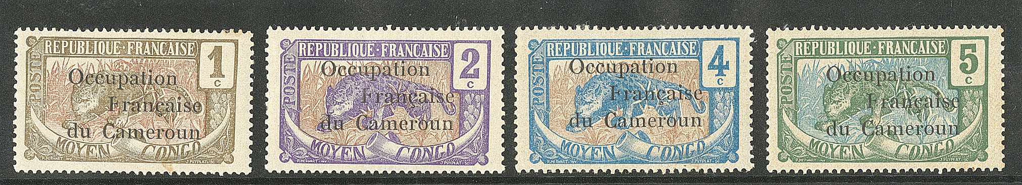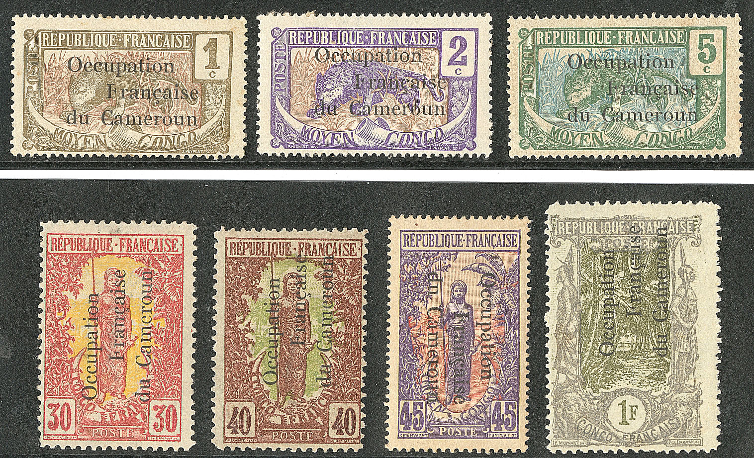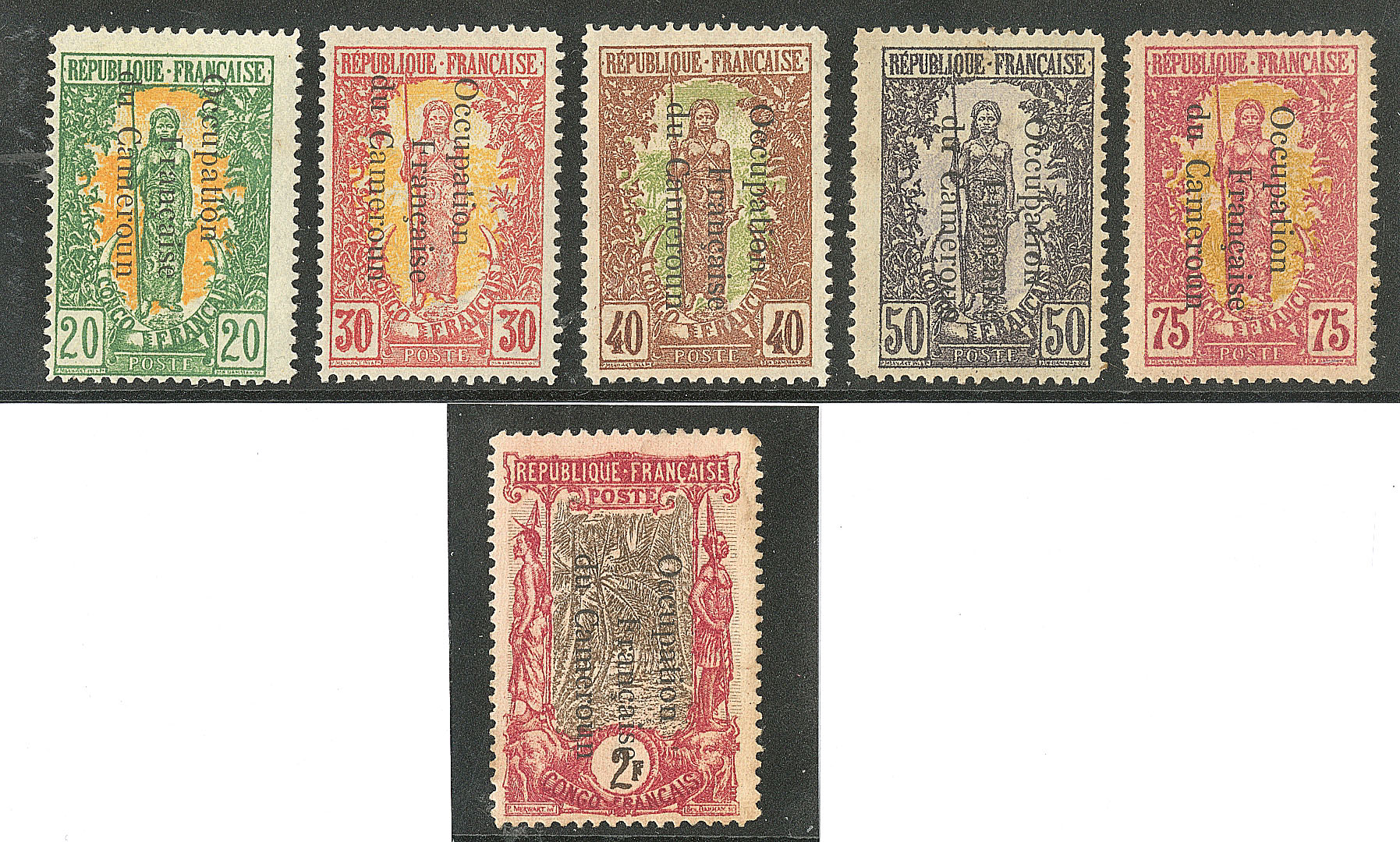 CAMEROUN. * Occupation française. Surcharge de bas en haut. Nos 58a, 59a, 61a, 63a à 66a. - TB (cote Yvert : 1080€) (Image)