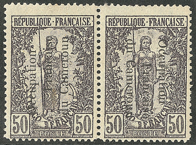 CAMEROUN. * Occupation française. Paire avec surcharge tête-bêche. No 63b, paire pos. 75-76, quasiment **. - TB. - R (cote Yvert : 2350€) (Image) (Image2)