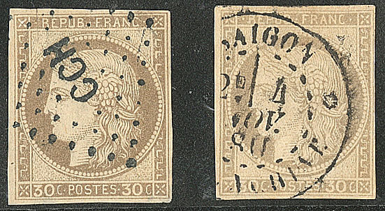 COCHINCHINE. Précurseurs. CG 20, obl losange "CCH" et Saïgon, un ex aminci. - TB (cote Yvert : 290€) (Image)