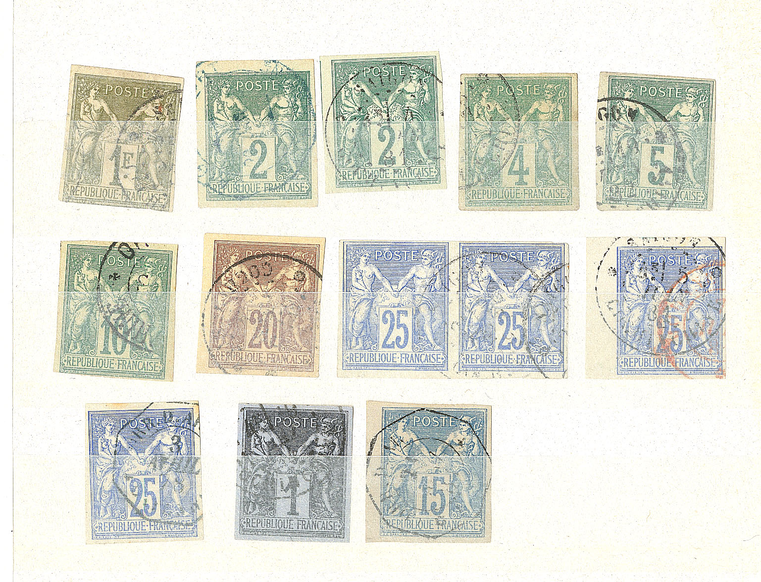 COCHINCHINE. Précurseurs. Lot 1877-1880, obl diverses sur CG entre les N°29 et 41. - TB ou B (Image)