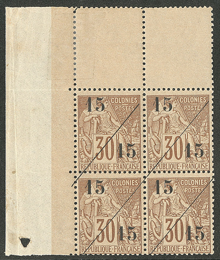 CONGO FRANÇAIS. ** Erreur de couleur. Triple piquage. No 29 bloc de quatre bdf dont un ex du 29c. - TB (Image)