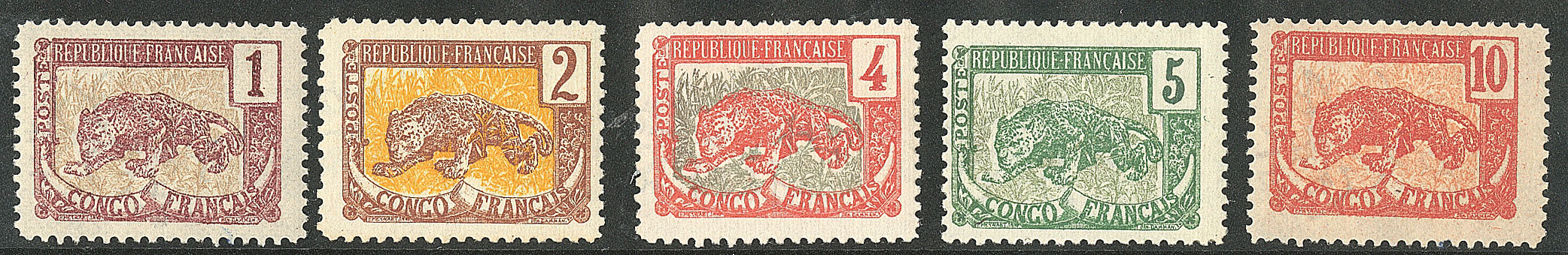 CONGO FRANÇAIS. * Corne tronquée. Nos 27b**, 28c, 29c**, 30c, 31b. - TB (cote Yvert : 460€) (Image)