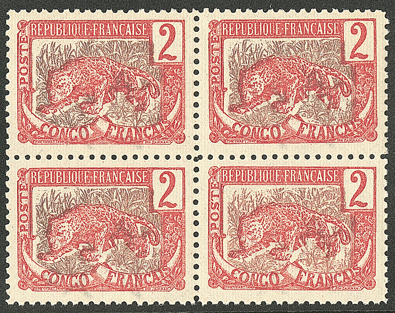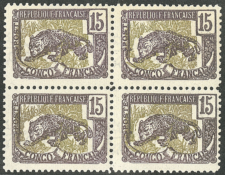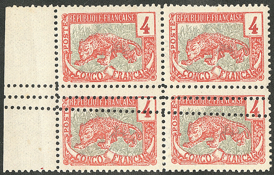 CONGO FRANÇAIS. ** Erreur de couleur. No 28b, bloc de quatre, très frais. - TB (cote Yvert : 1880€) (Image) (Image2)