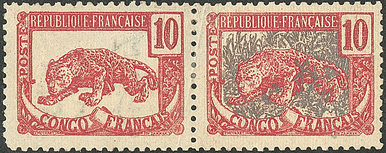 CONGO FRANÇAIS. * Erreur de couleur. Nos 31c + 31 sans teinte de fond, en paire se tenant. - TB. - R (Image) (Image2)
