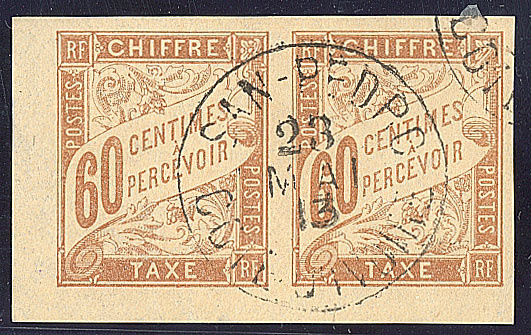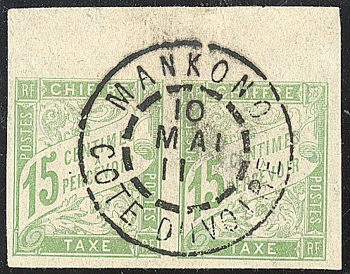 COTE-D'IVOIRE. Précurseurs. Taxe. CG 20 paire bdf, obl cad "Mankono" mai 1911, superbe (Image)