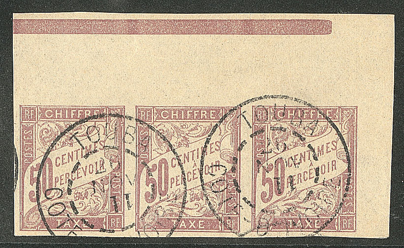 COTE-D'IVOIRE. Précurseurs. Taxe. CG 23, bande de trois cdf obl cad "Touba" (deux frappes). - TB (cote Yvert : 255€) (Image)