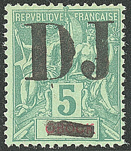 COTE FRANÇAISE DES SOMALIS. * Double surcharge avec gros "0". No 32d, rousseurs au verso sinon TB. - R (cote Yvert : 2100€) (Image)