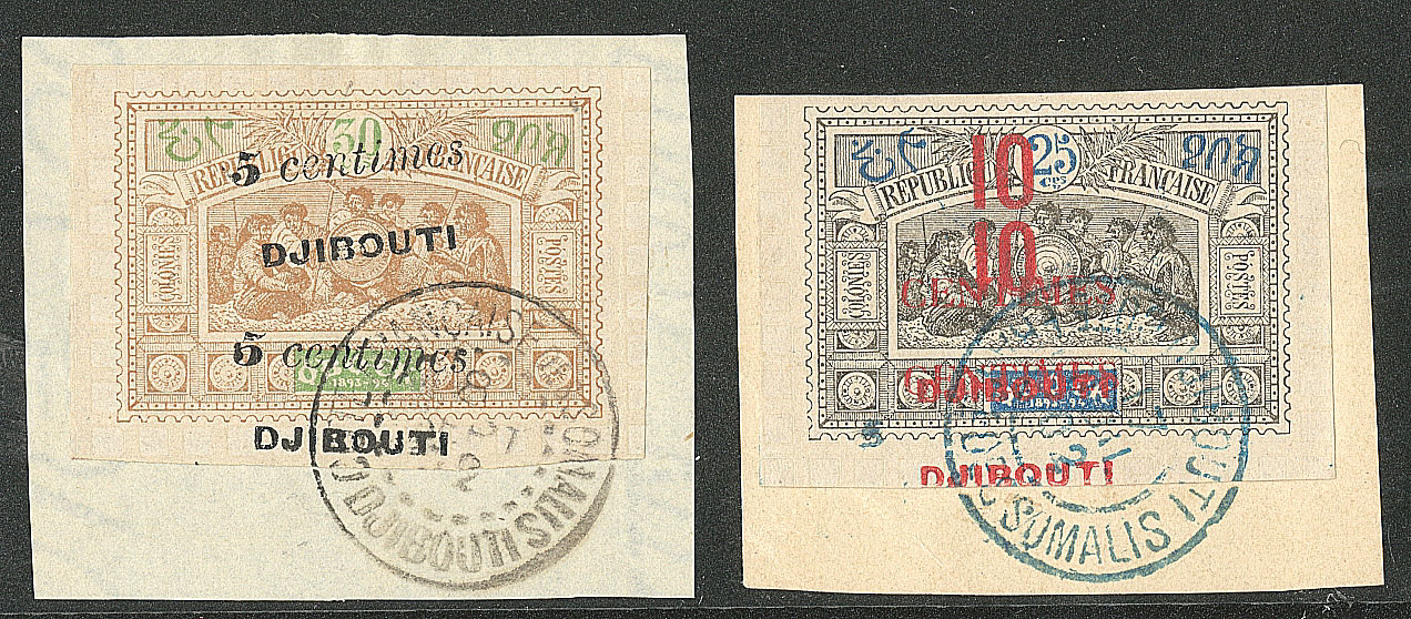 COTE FRANÇAISE DES SOMALIS. Double surcharge. Nos 30b, 31b, sur deux supports. - TB (cote Yvert : 655€) (Image)
