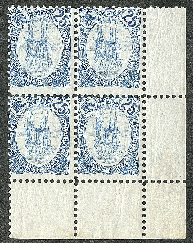 COTE FRANÇAISE DES SOMALIS. ** Taxe. Nos 21 à 38, tous en bloc de quatre, infimes adhérences sur qqs ex. - TB (cote Yvert : 500€) (Image)