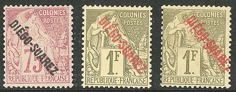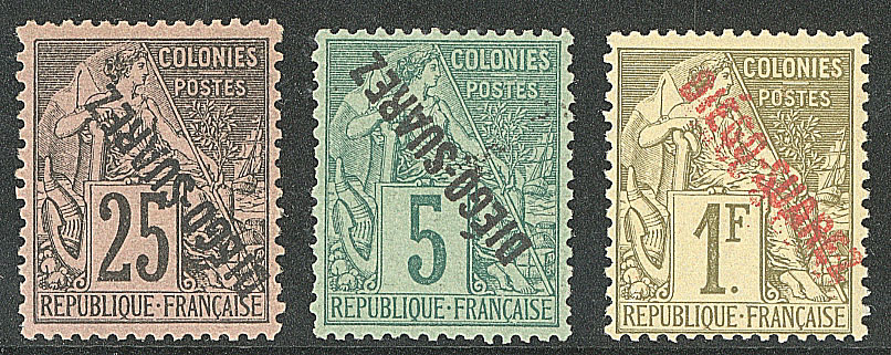 DIEGO-SUAREZ. * Surcharge renversée. Nos 16a, 20a, double surcharge 24a. - TB (cote Yvert : 1105€) (Image)