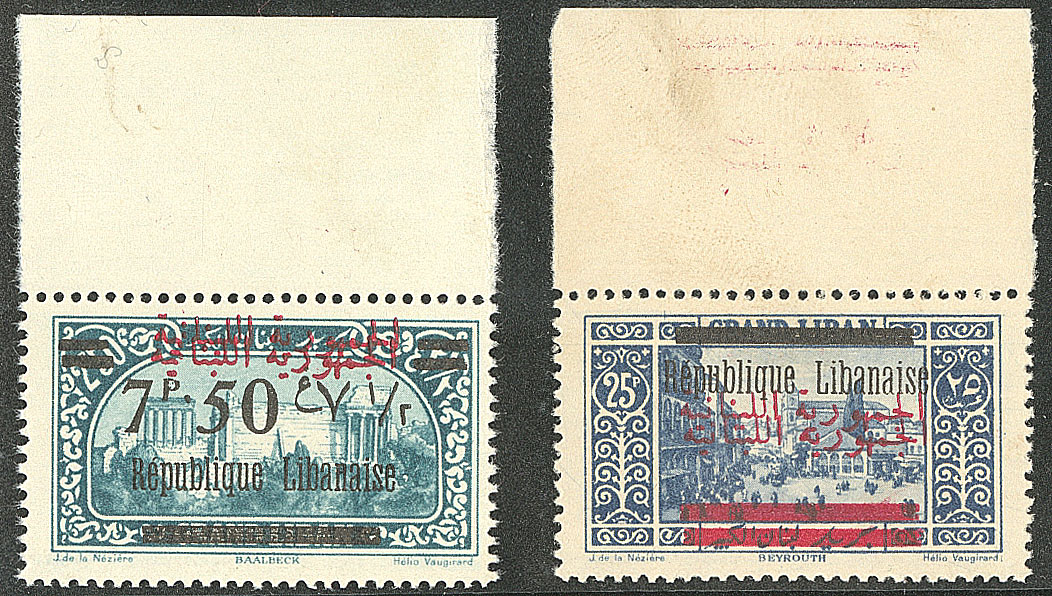 GRAND LIBAN. ** Surcharge recto-verso. Nos 181a, 186e. - TB (cote Yvert : 755€) (Image)