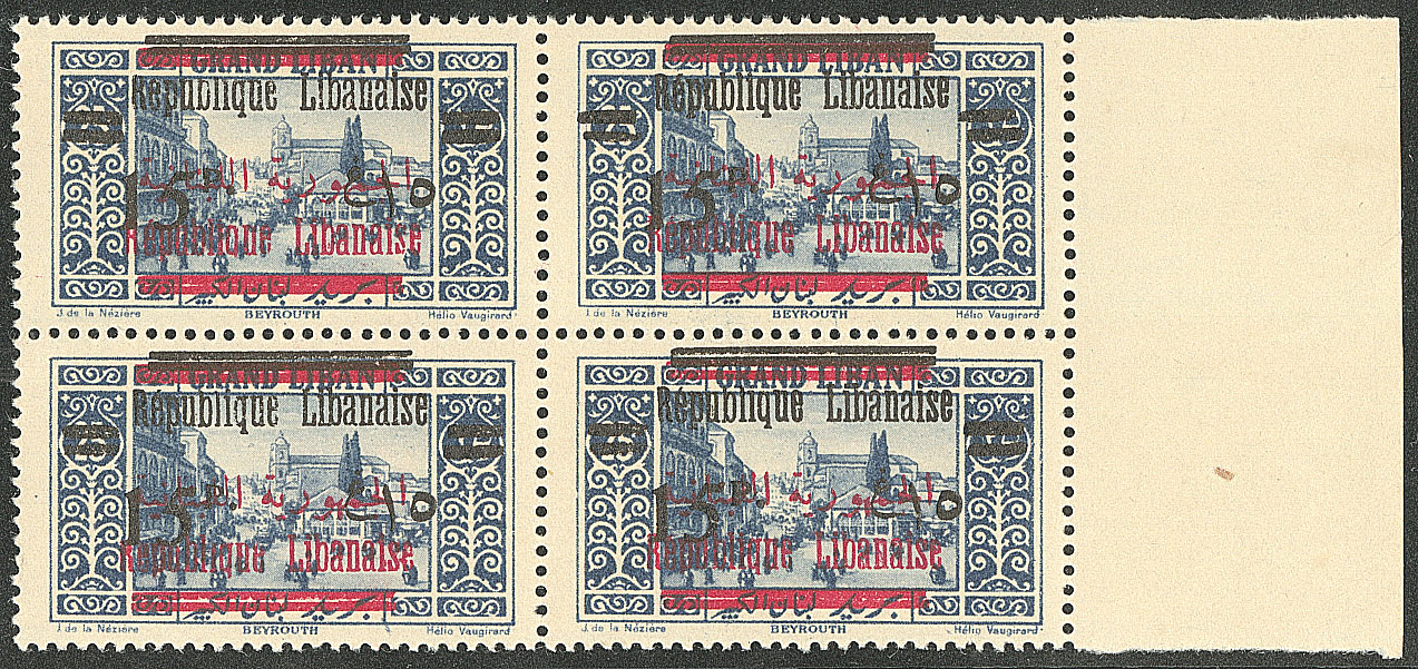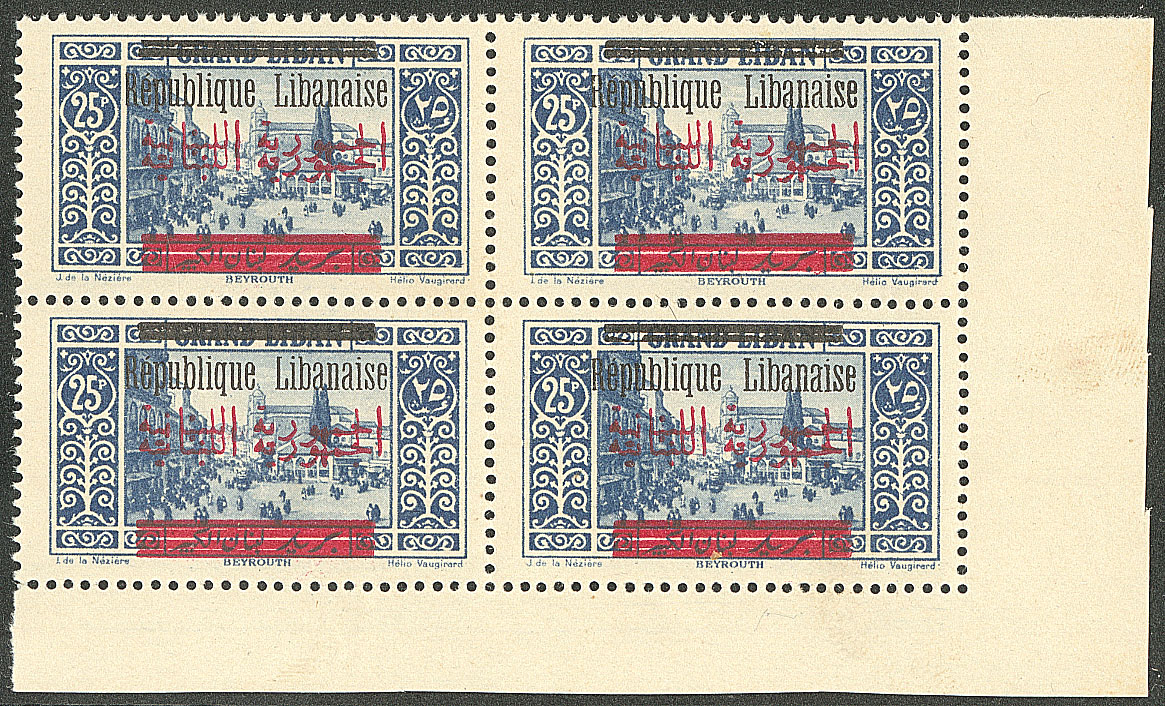 GRAND LIBAN. ** Double surcharge N + R. No 109b, bloc de quatre bdf. - TB (cote Yvert : 2520€) (Image)