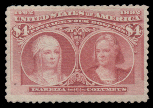 244,$4.00 Columbian, F-VF RG, over thin; very attractive, 1985 APEX certificate Cat($1,000)....$300