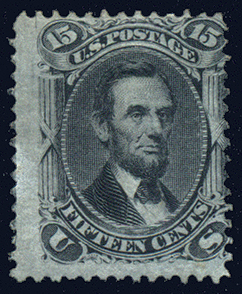 77, 15¢ BLACK, Avg RG, minor 2mm scratched plate variety in upper left corner, feels like a thin paper variety, but Scott doesn't list that option. Sound and nice Cat($1,900)....$1,200