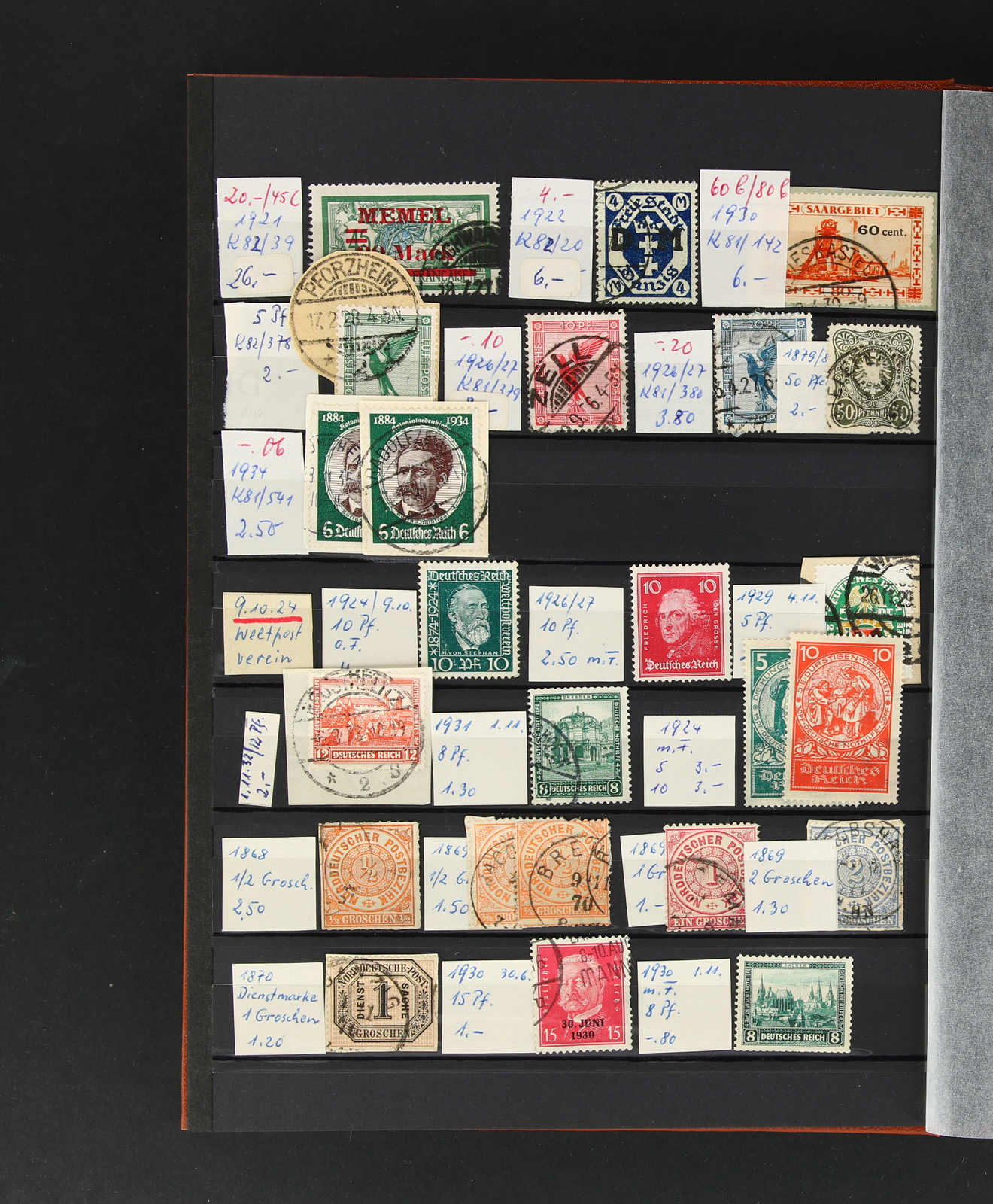 SAMMLERNACHLASS: 1855/1940 ca., Bestand im Karton mit deutschem Material interessanter Gebiete in verschiedenen Erhaltungen, angefangen bei Altdeutschland, Kolonien, Bes. I. WK, Danzig, Memel und Saar, dabei vieles signiert /