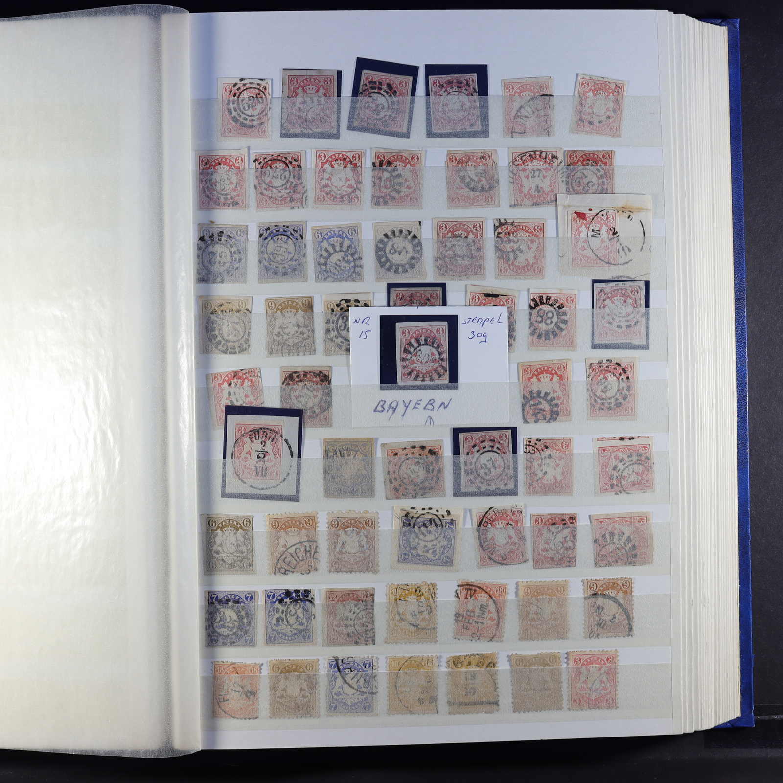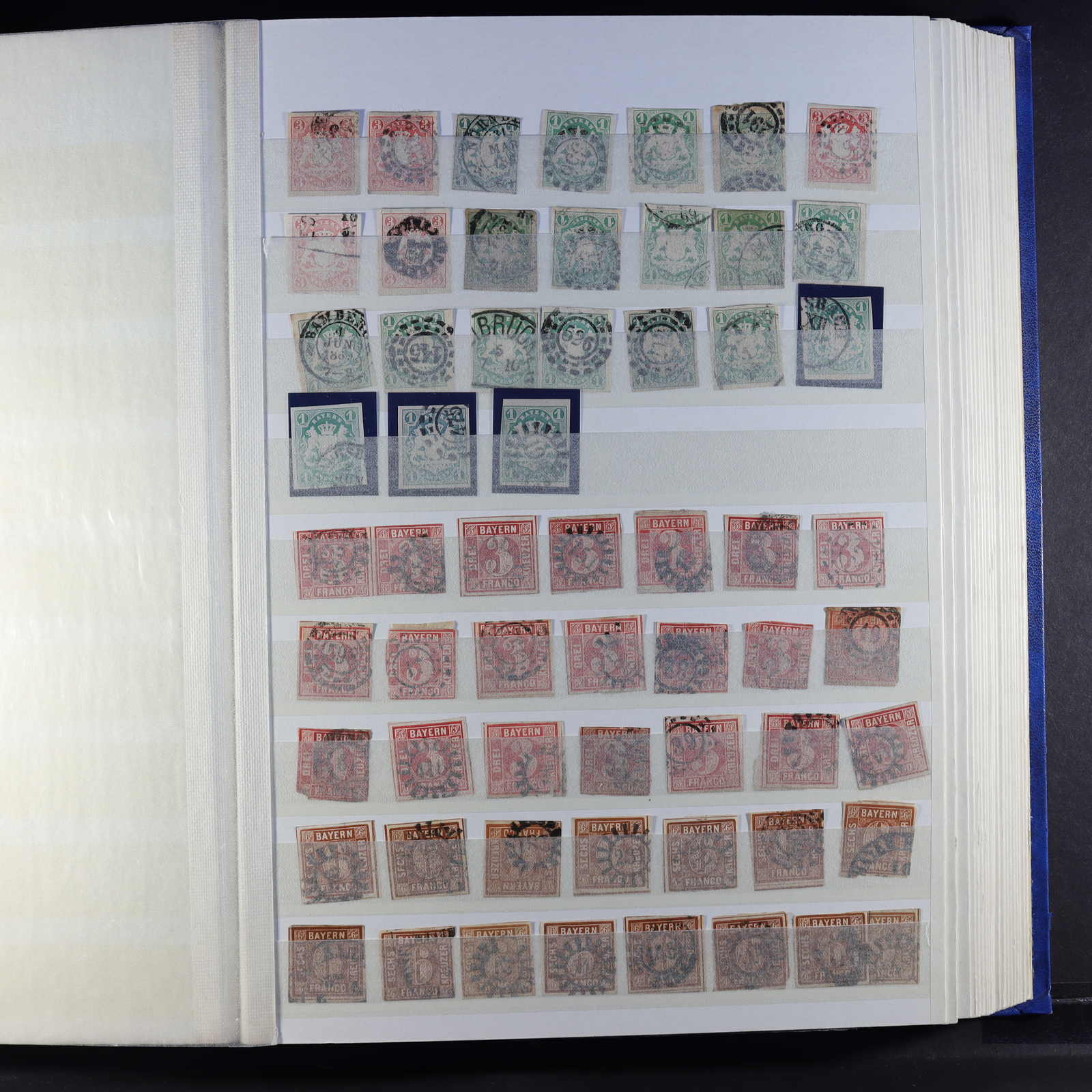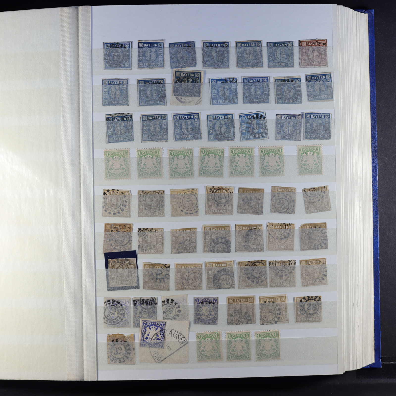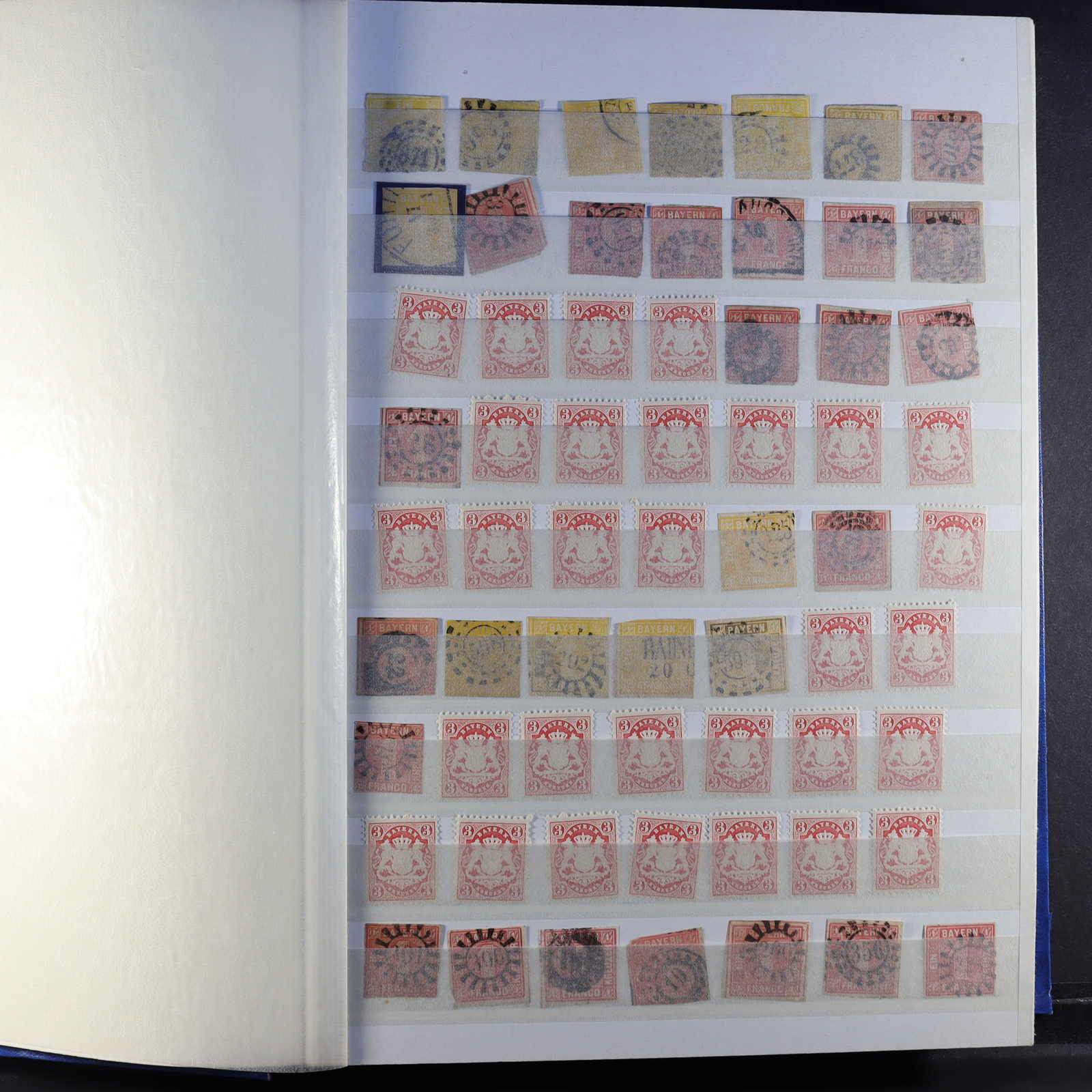 BAYERN: 1849/1920, gestempelte Sammlung auf Blanko-Albenseiten, nicht komplett, jedoch etliche bessere Werte enthalten, u.a. Mi-Nr. 2 I, 4 I, 7, 13 a, 18-19, 29 Y a/b, 32 c, 34-36, 43, D 1-43 und P 4-13, dazu viele Plattenfehler,