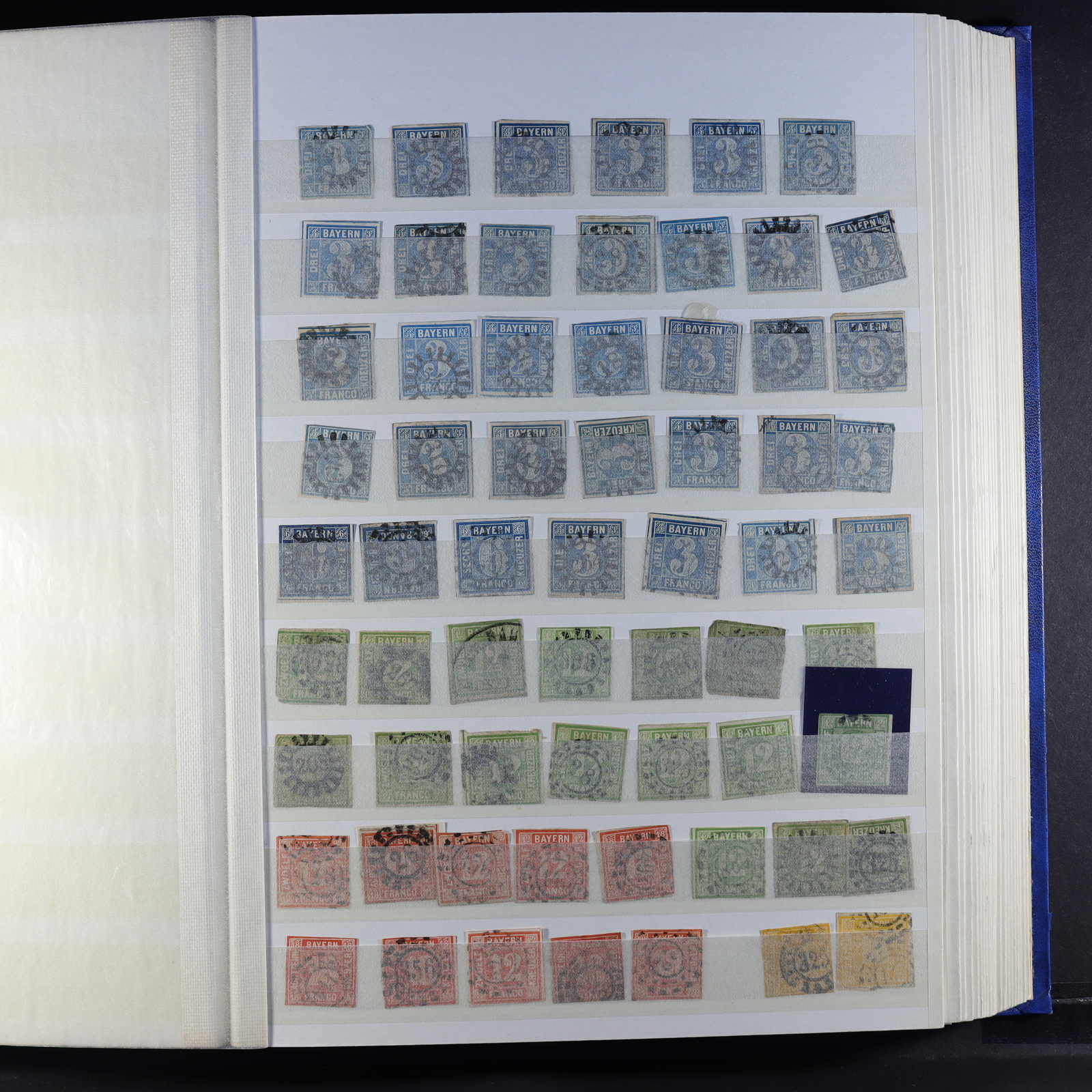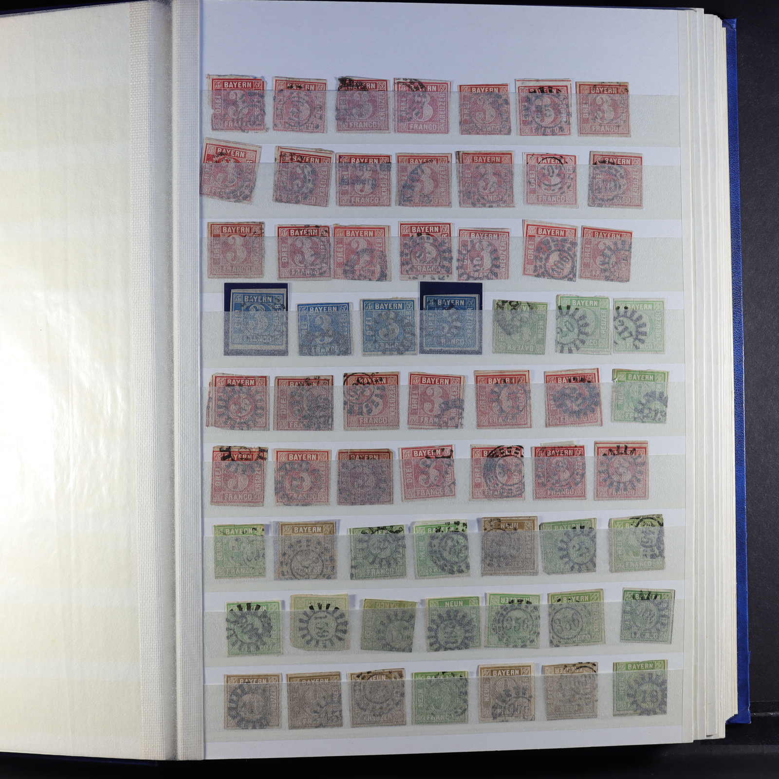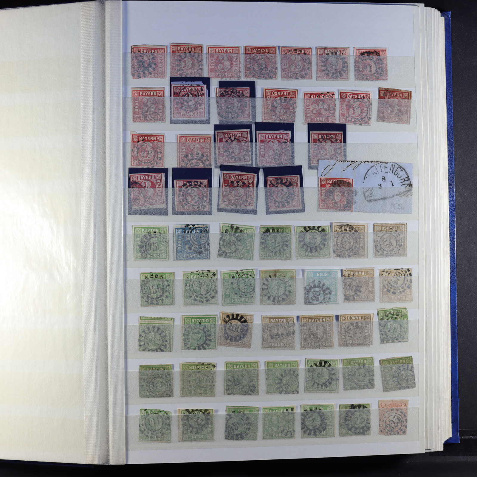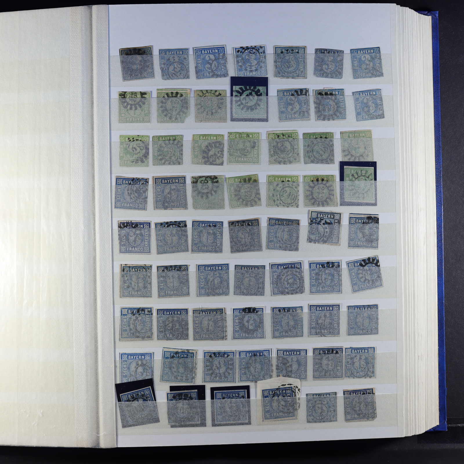 BAYERN: 1849/1920, gestempelte Sammlung auf Blanko-Albenseiten, nicht komplett, jedoch etliche bessere Werte enthalten, u.a. Mi-Nr. 2 I, 4 I, 7, 13 a, 18-19, 29 Y a/b, 32 c, 34-36, 43, D 1-43 und P 4-13, dazu viele Plattenfehler,