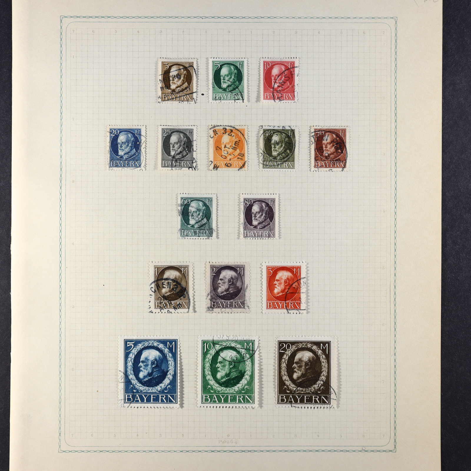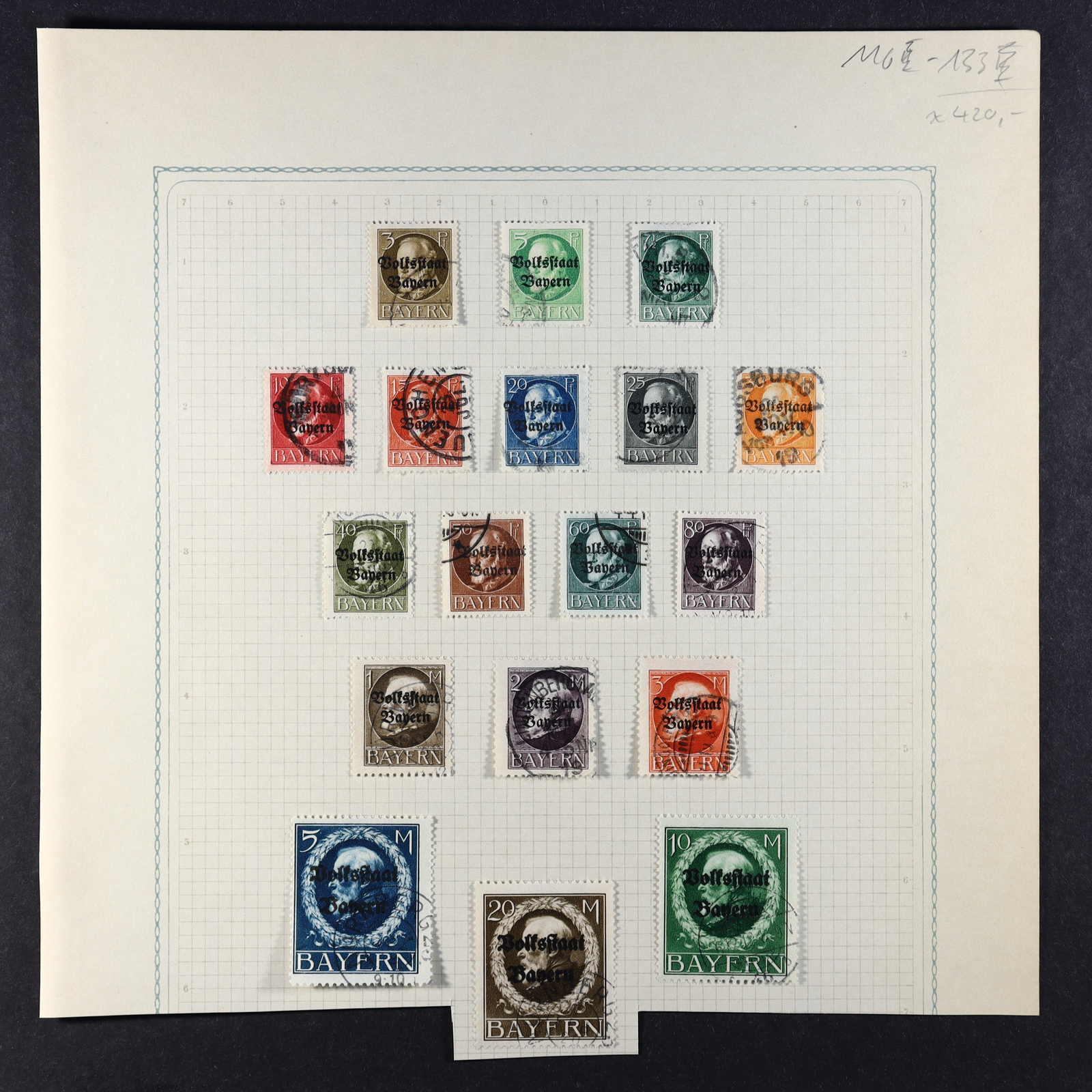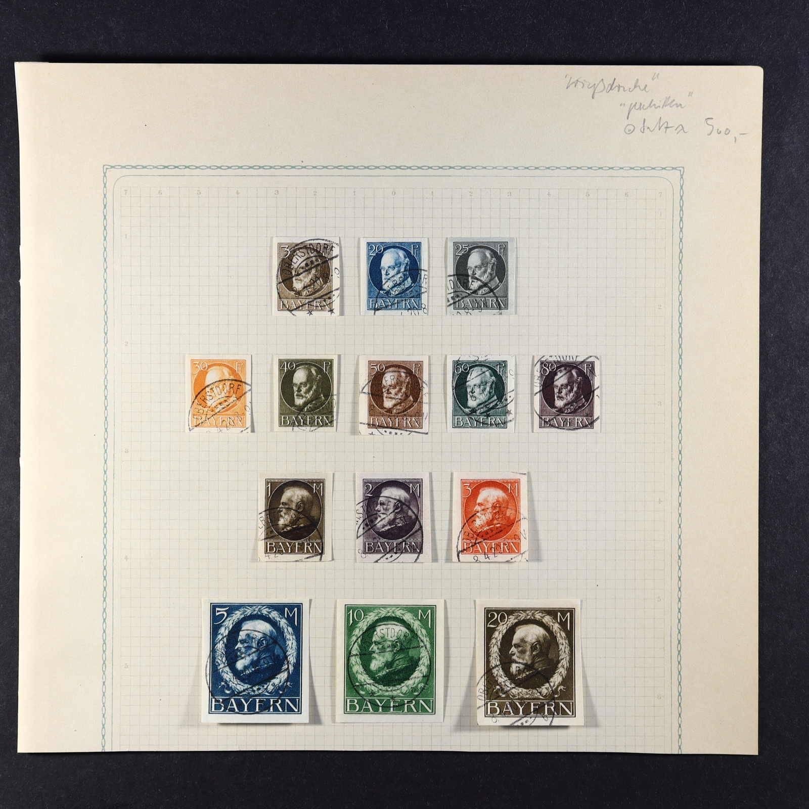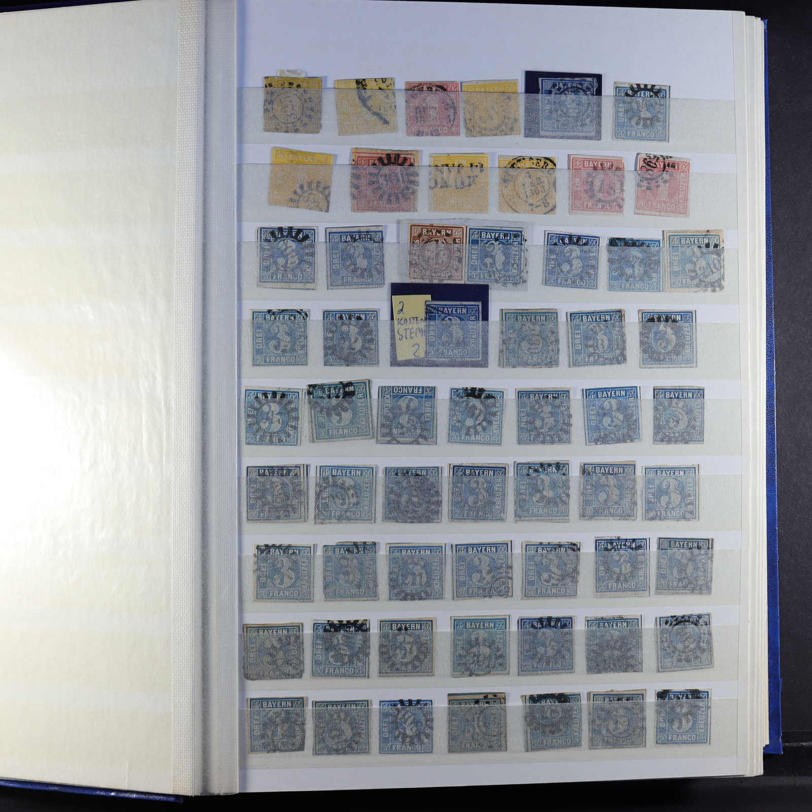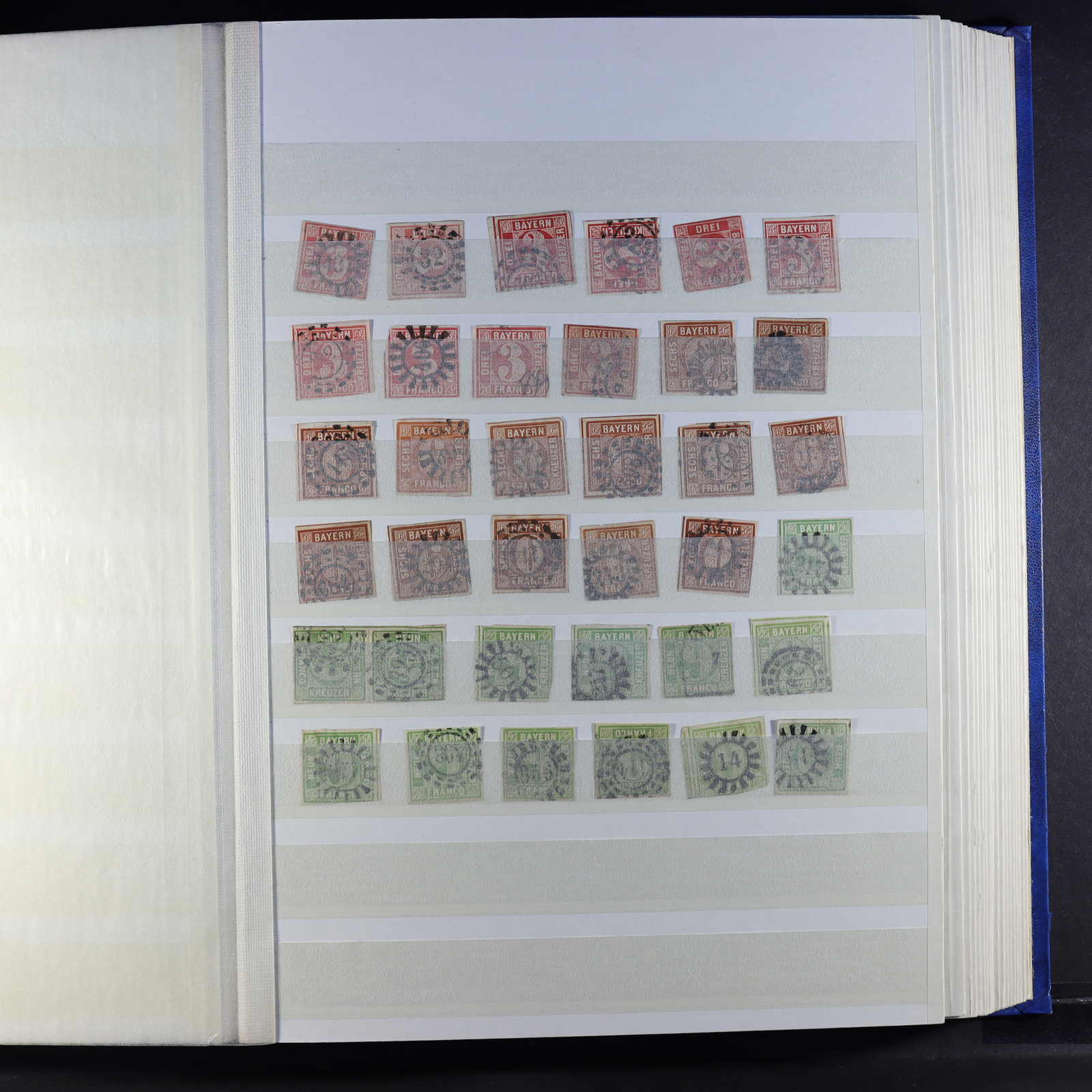 BAYERN: 1849/1920, gestempelte Sammlung auf Blanko-Albenseiten, nicht komplett, jedoch etliche bessere Werte enthalten, u.a. Mi-Nr. 2 I, 4 I, 7, 13 a, 18-19, 29 Y a/b, 32 c, 34-36, 43, D 1-43 und P 4-13, dazu viele Plattenfehler,
