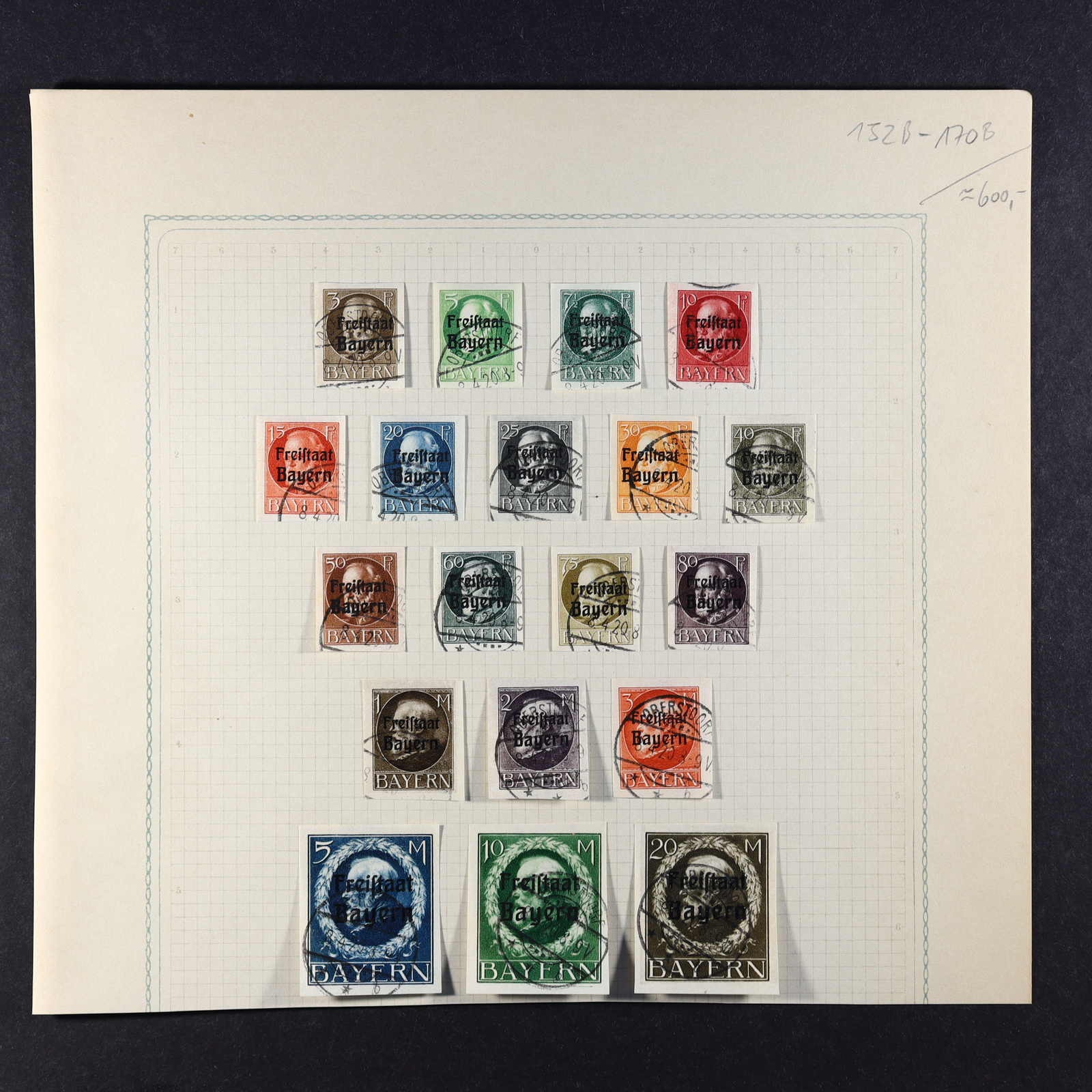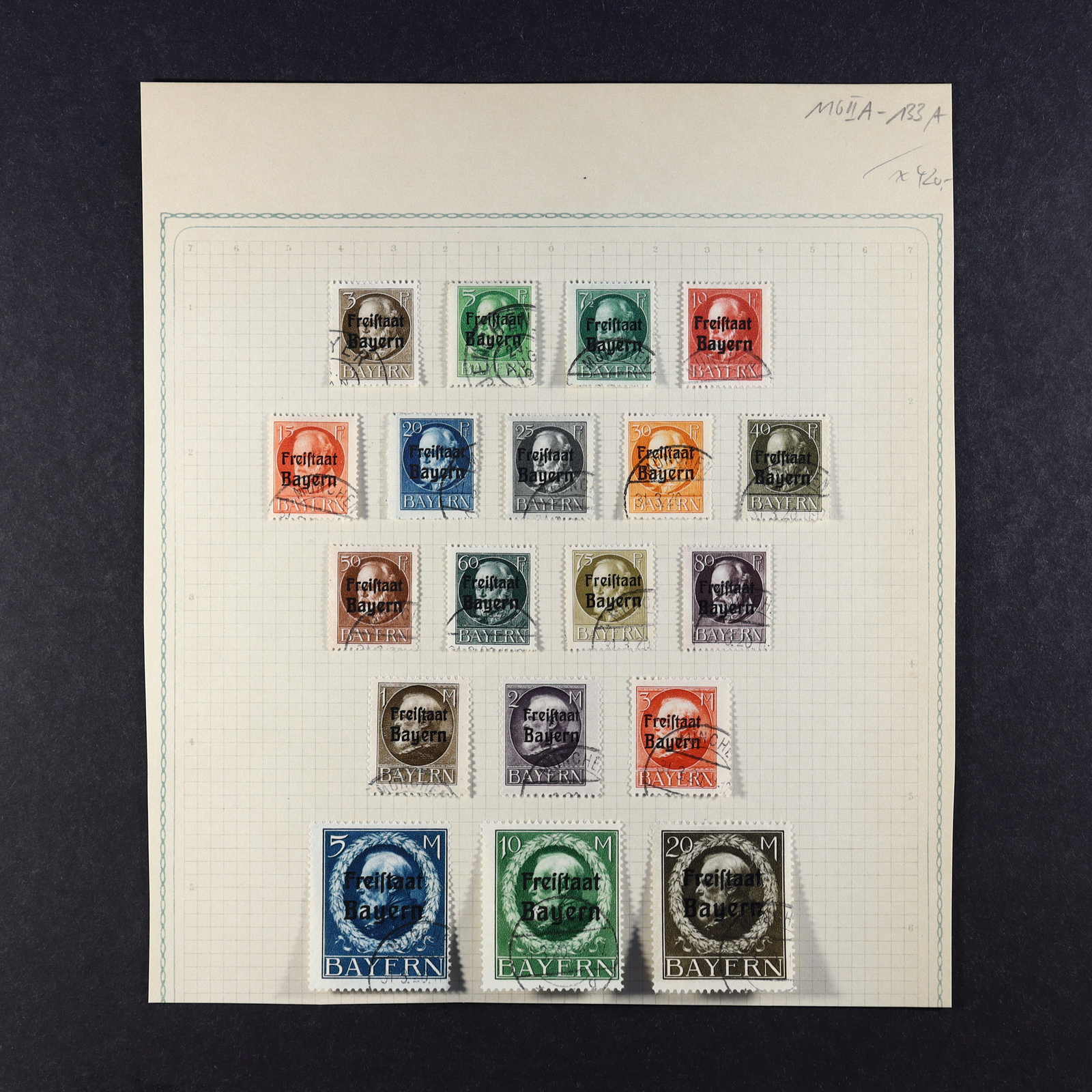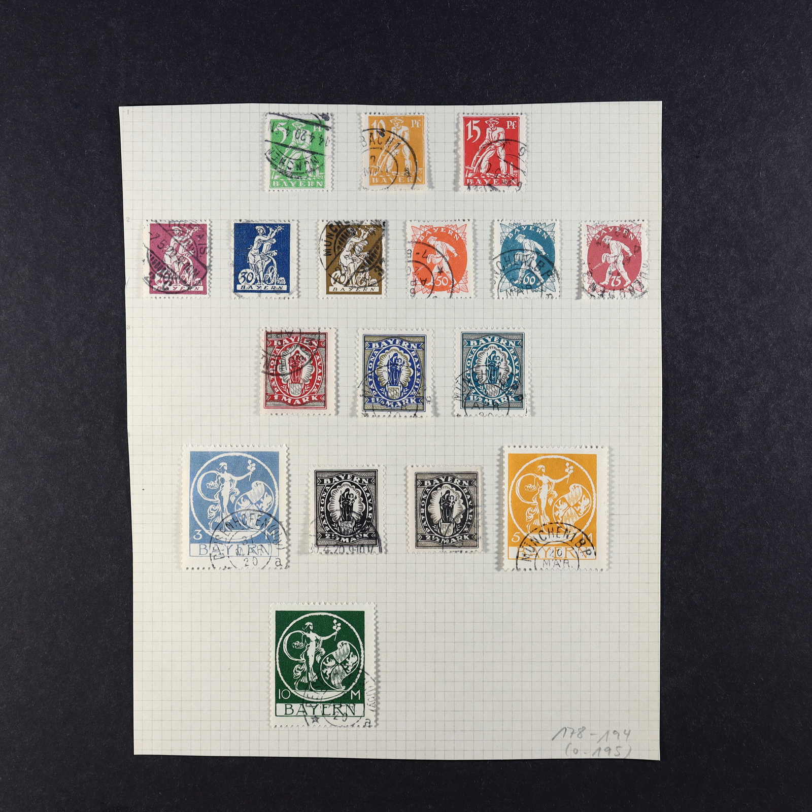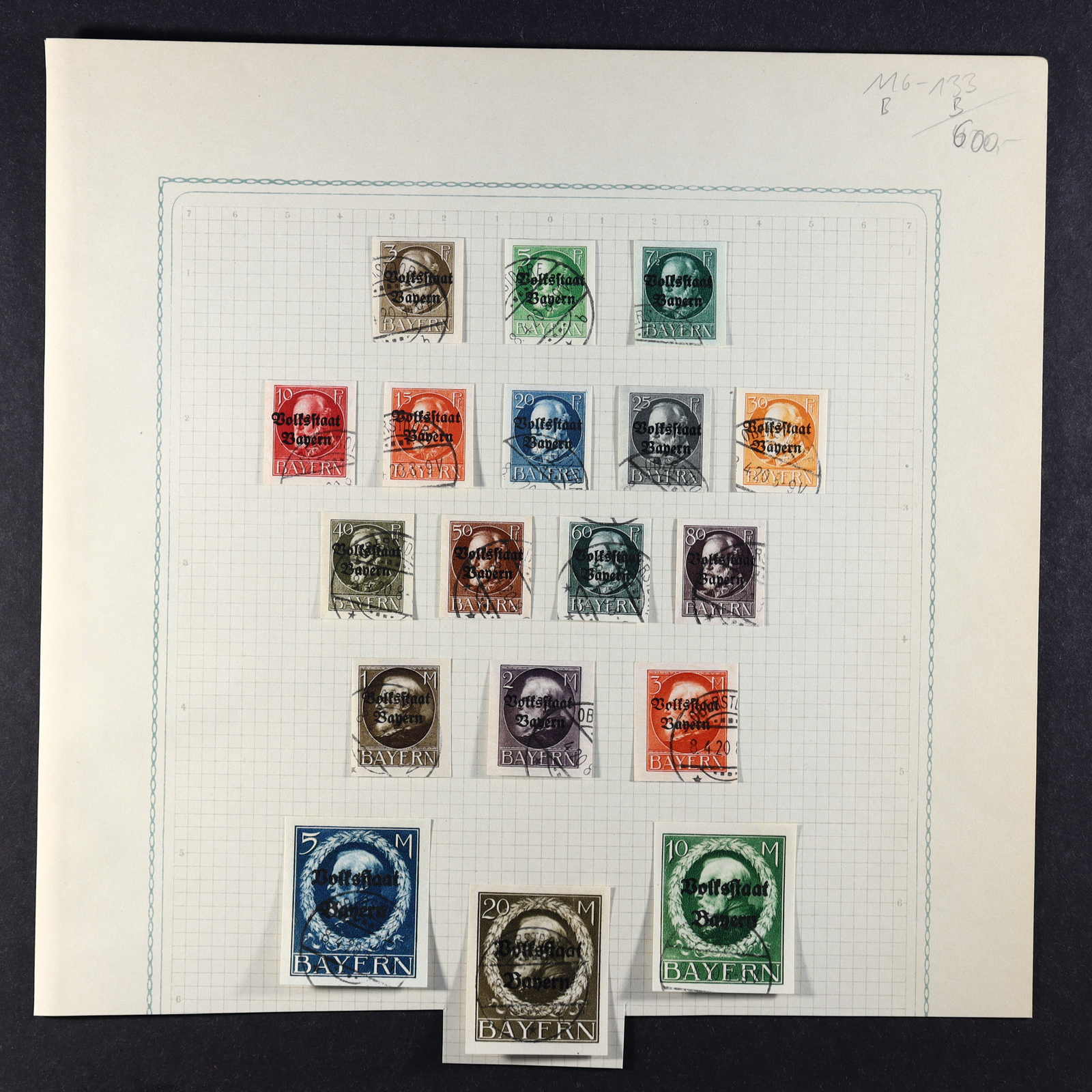 BAYERN: 1849/1920, gestempelte Sammlung auf Blanko-Albenseiten, nicht komplett, jedoch etliche bessere Werte enthalten, u.a. Mi-Nr. 2 I, 4 I, 7, 13 a, 18-19, 29 Y a/b, 32 c, 34-36, 43, D 1-43 und P 4-13, dazu viele Plattenfehler,