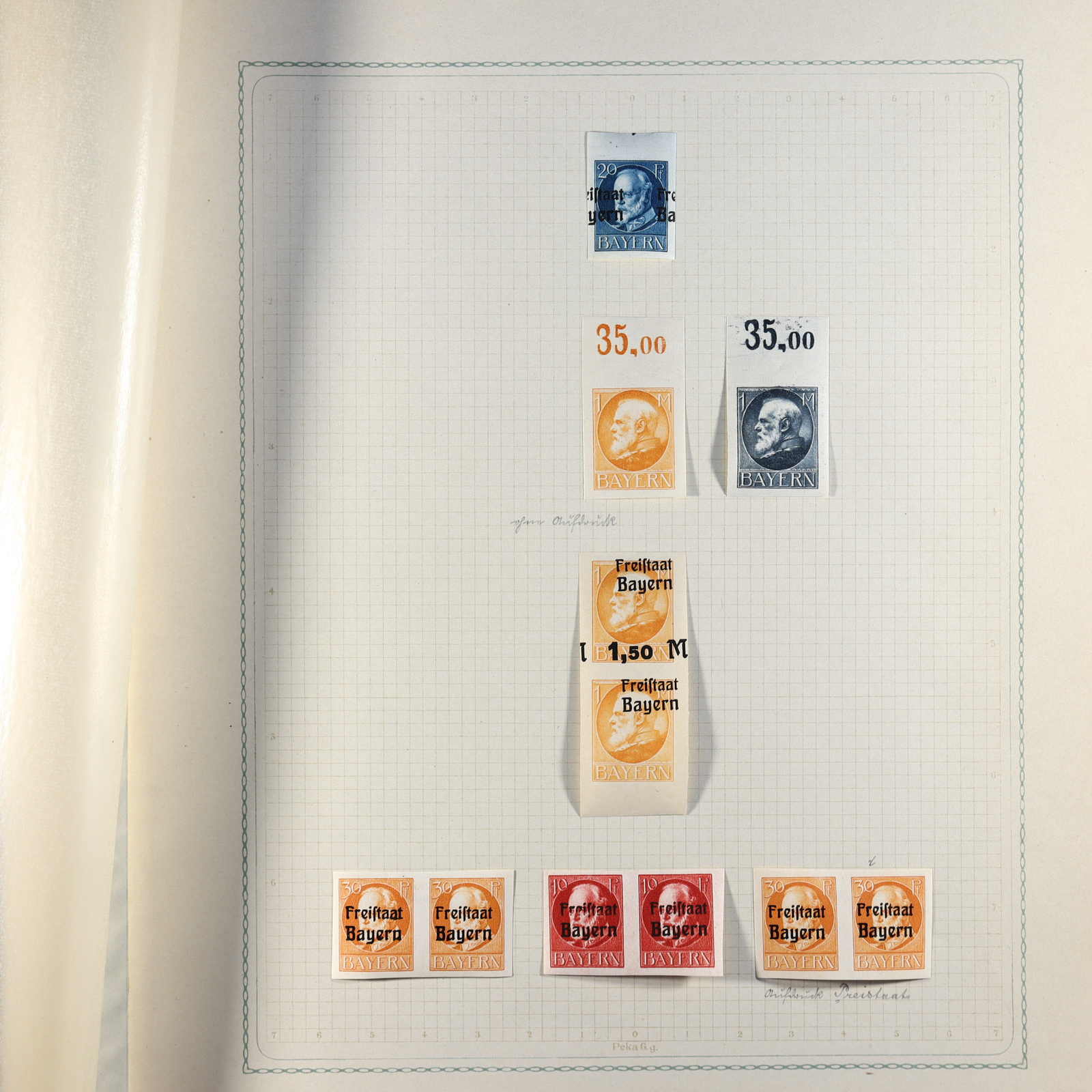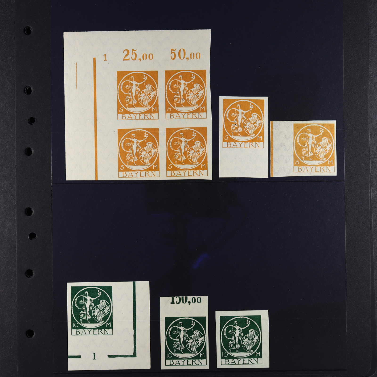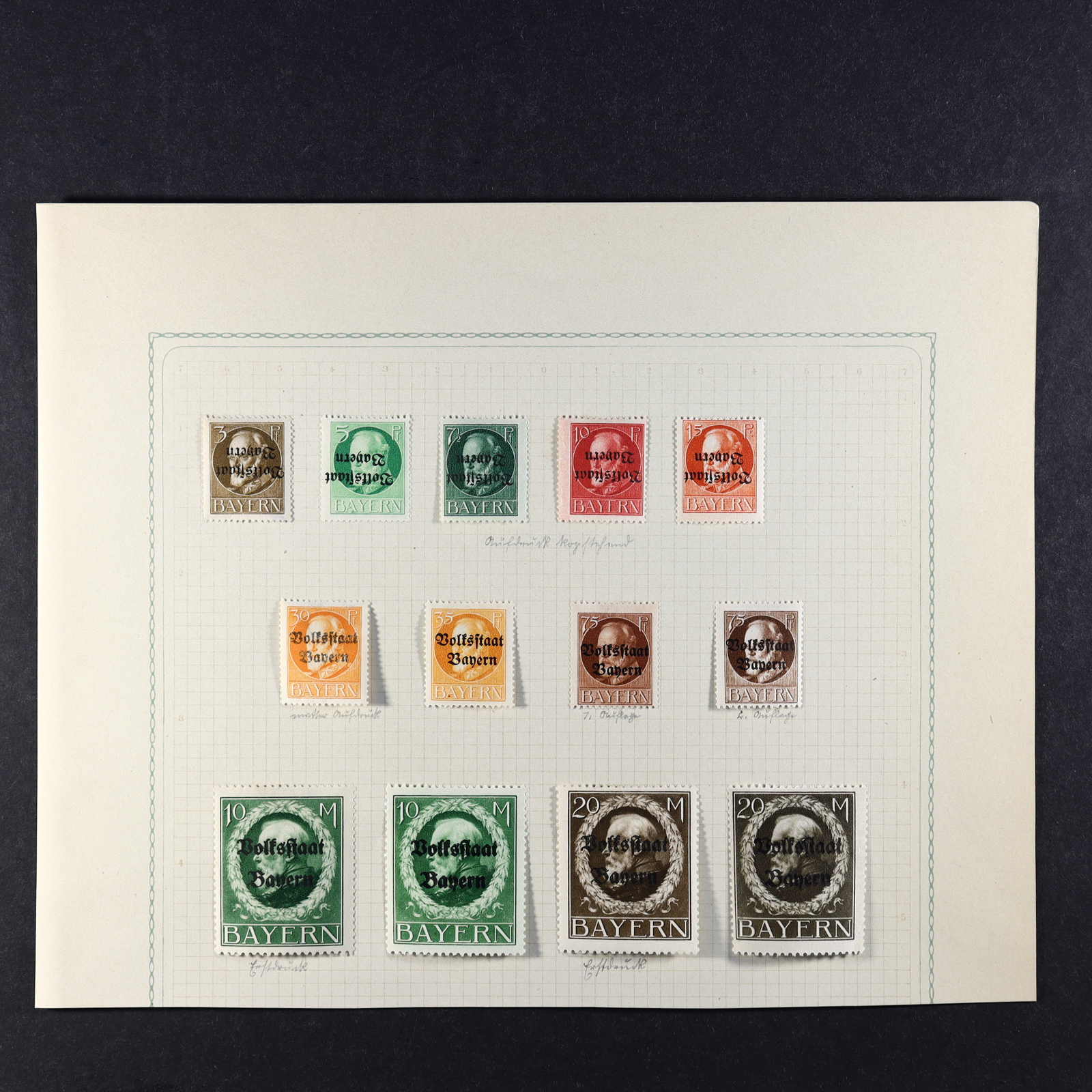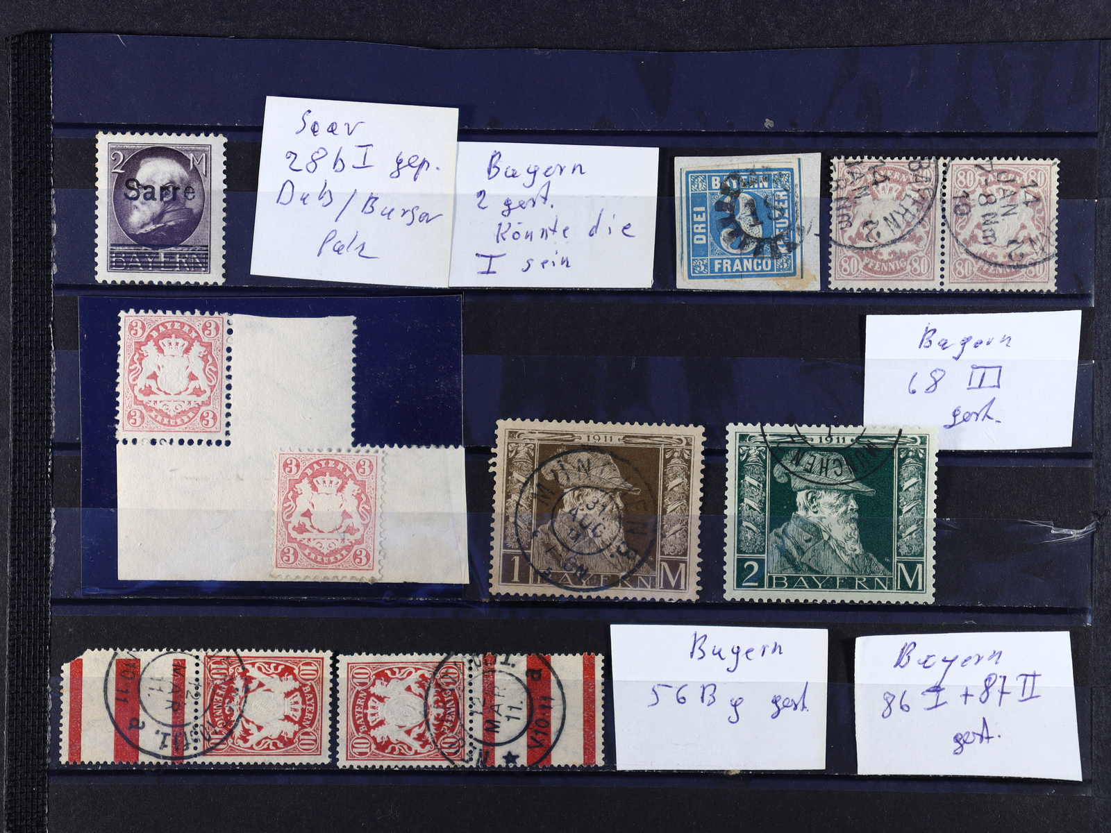 Papiersorten, Druckzufälligkeiten und sonstige Abarten, teils unberechnet, vieles ist geprüft bzw. mit Kurzbefund versehen, meist gute Qualität, Katalogwert weit über 13.500 Euro, dazu Dubletten und Handbuch Kamm/Schäffler "Bayerische Dienstmarken" (Image) (imagea)