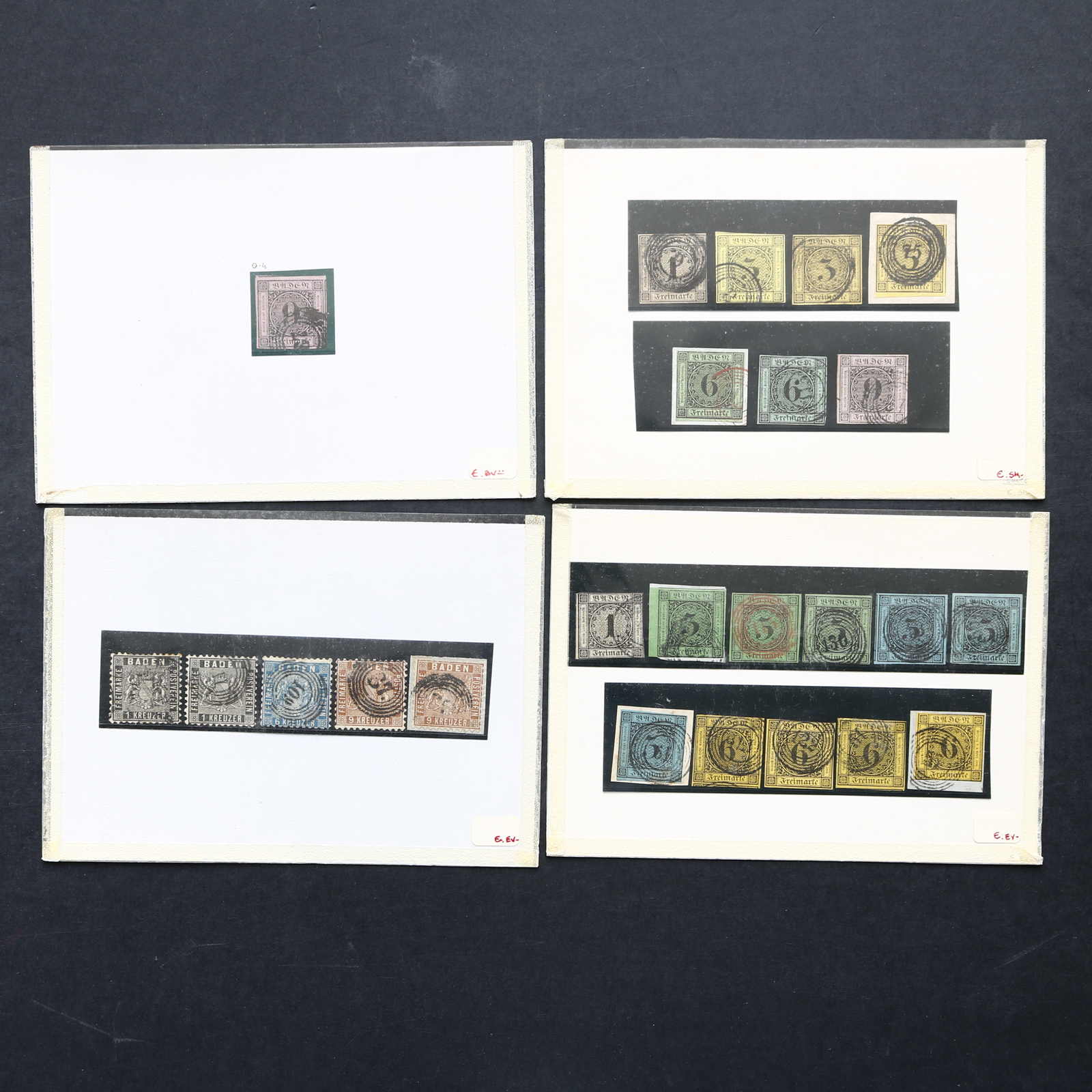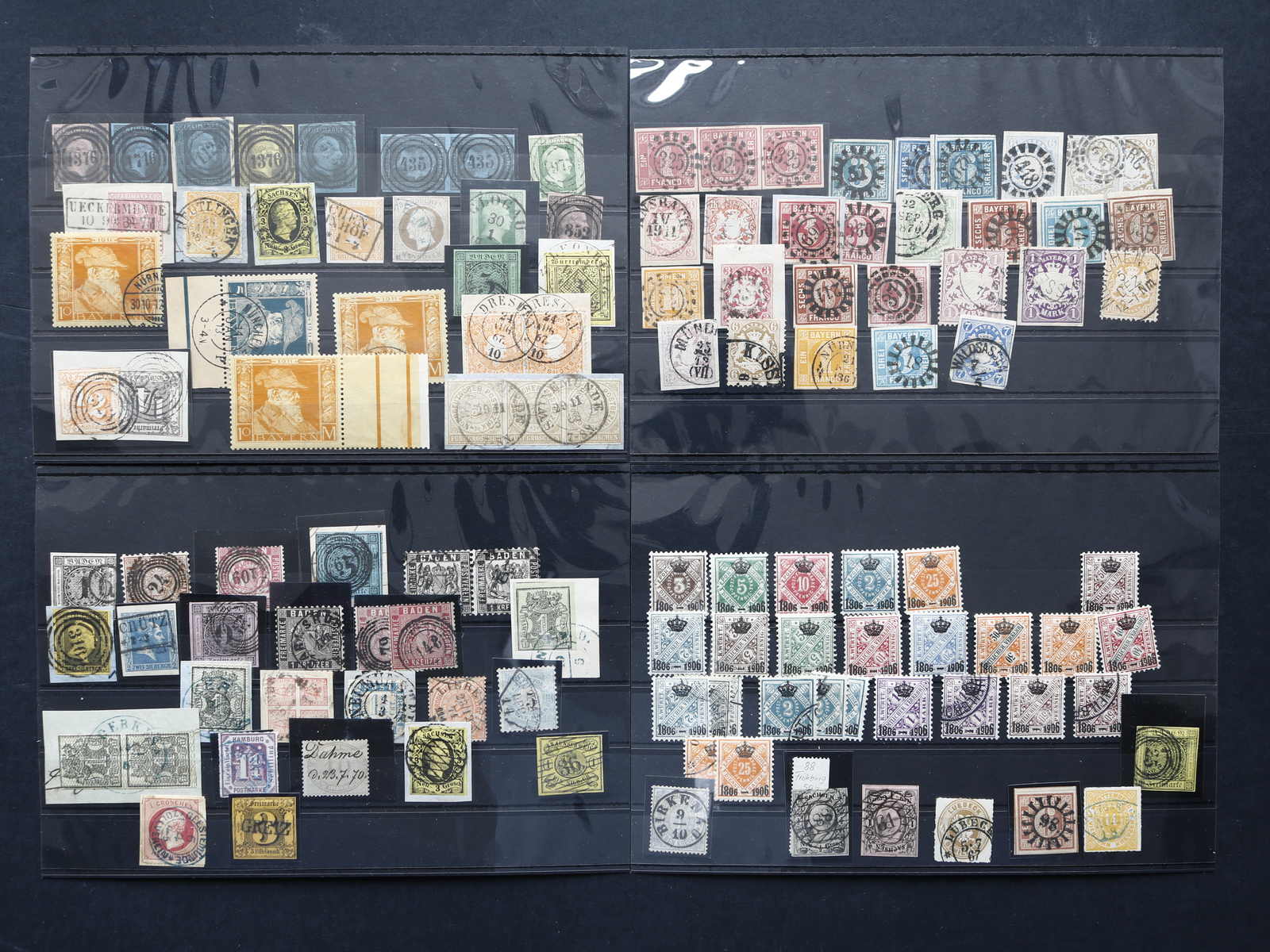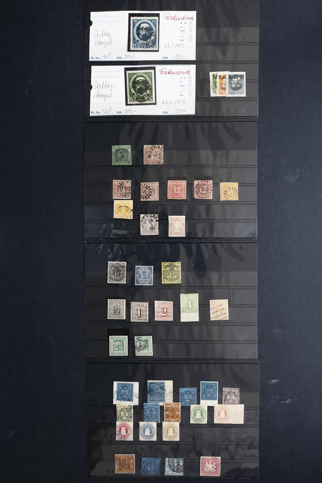 ALTDEUTSCHLAND: 1849/1920 ca., Partie auf vier Steckkarten mit mehreren altdeutschen Gebieten in verschiedenen Erhaltungen, aus altem Bestand mit besseren Werten in üblicher Sammlungsqualität, nicht näher überprüft oder bestimmt,