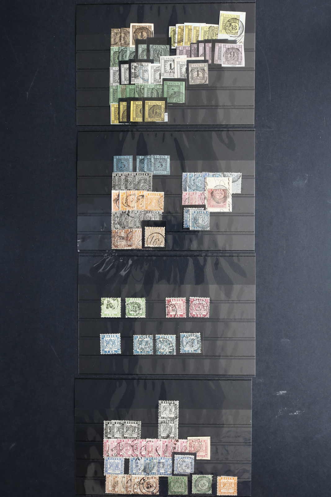 BADEN: 1851/68, interessante Partie auf vier Steckkarten mit auch besseren Werten in ganz überwiegend gestempelter Erhaltung, aus altem Bestand in üblicher Sammlungsqualität, bitte besichtigen (Image)