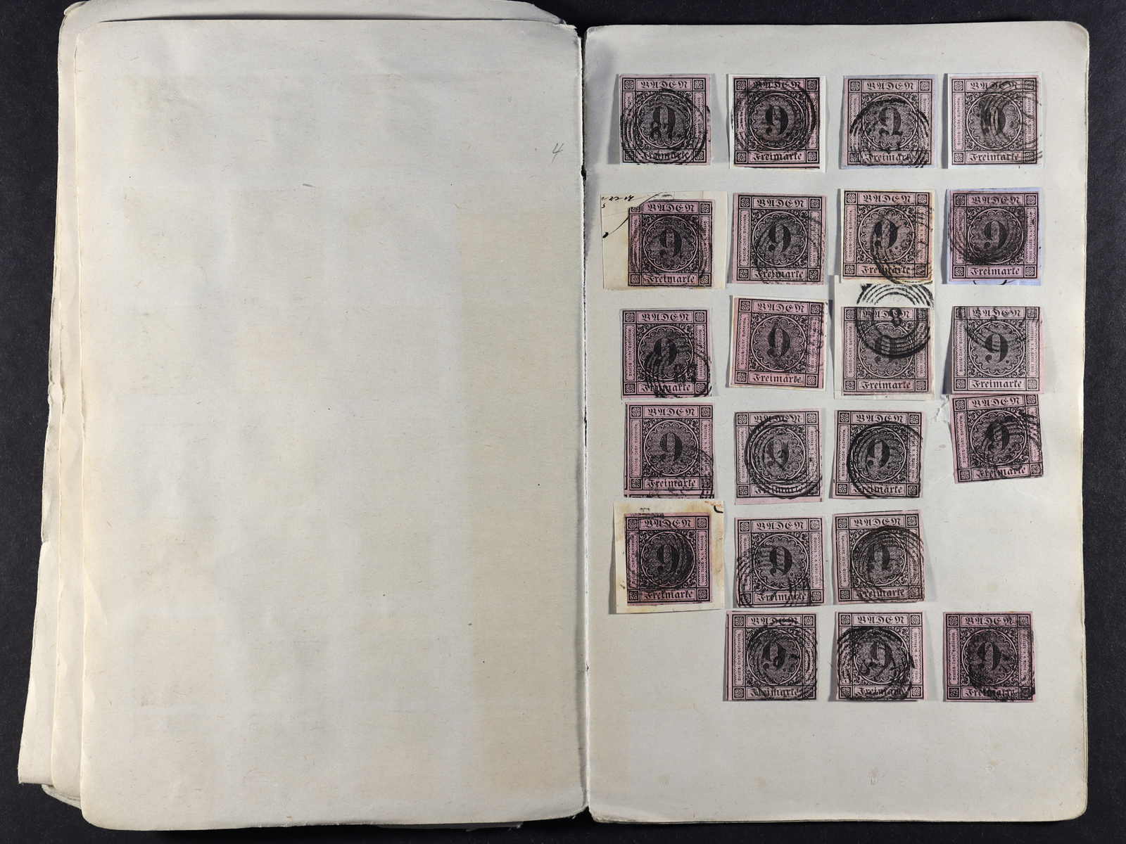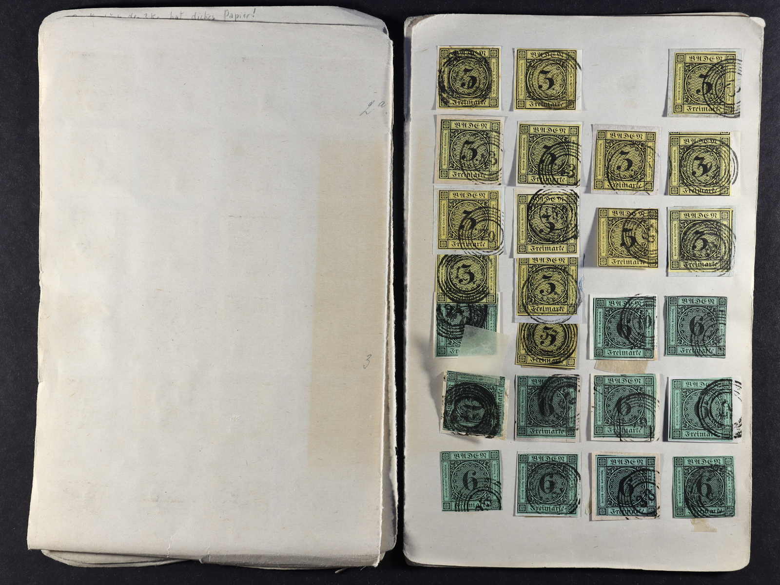 BADEN: 1851/68, gestempelte Sammlung auf Blanko-Albenseiten, nicht komplett, jedoch etliche bessere Werte enthalten, u.a. Mi-Nr. 1 b, 3 a, 4 a, 11 a/b, 12, 13 a+c, 14 b (2), 15 a-c inkl. ba und 16, dazu viele Plattenfehler,
