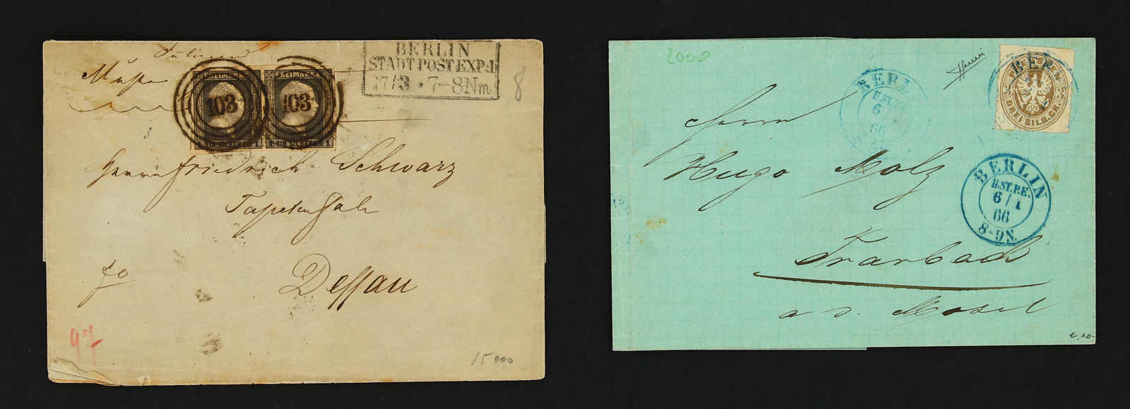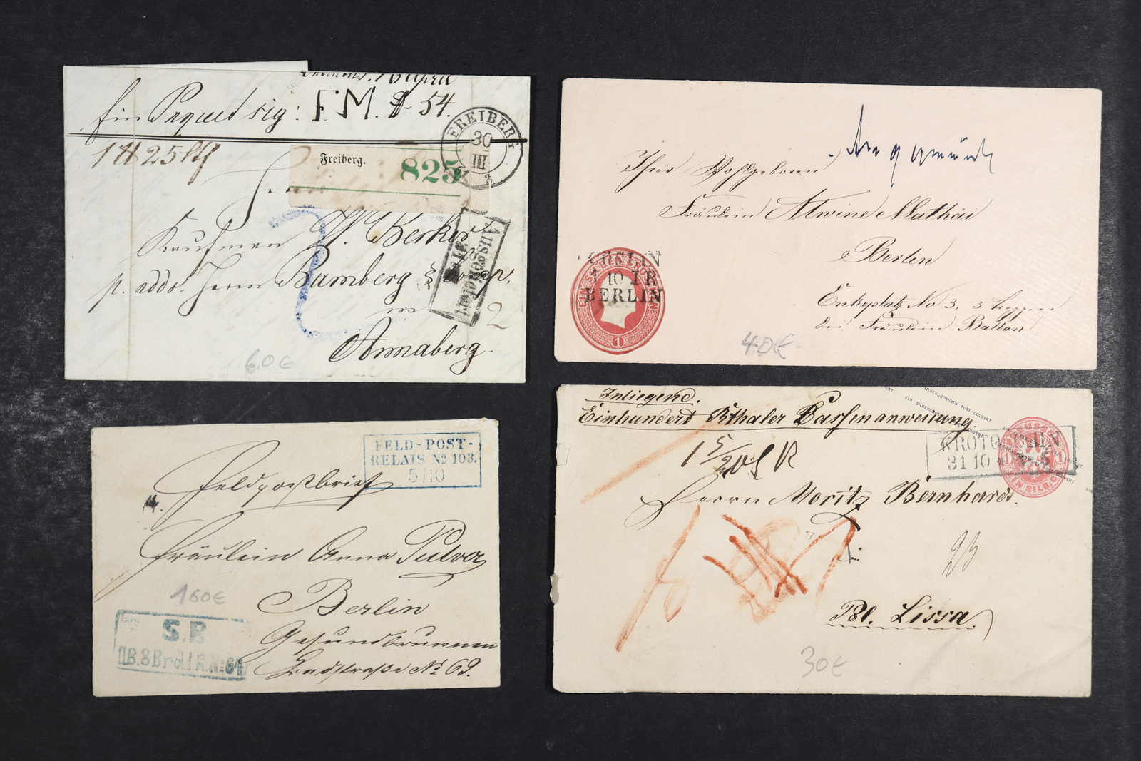 handschriftlicher Aufgabe "Angermünde", frankiert mit einem GAA 17, dazu etwas Sachsen, Bayern, T & T und Württemberg, ges. 10 Belege, hoher Katalogwert, überwiegend gute Qualität (Image) (imagea)