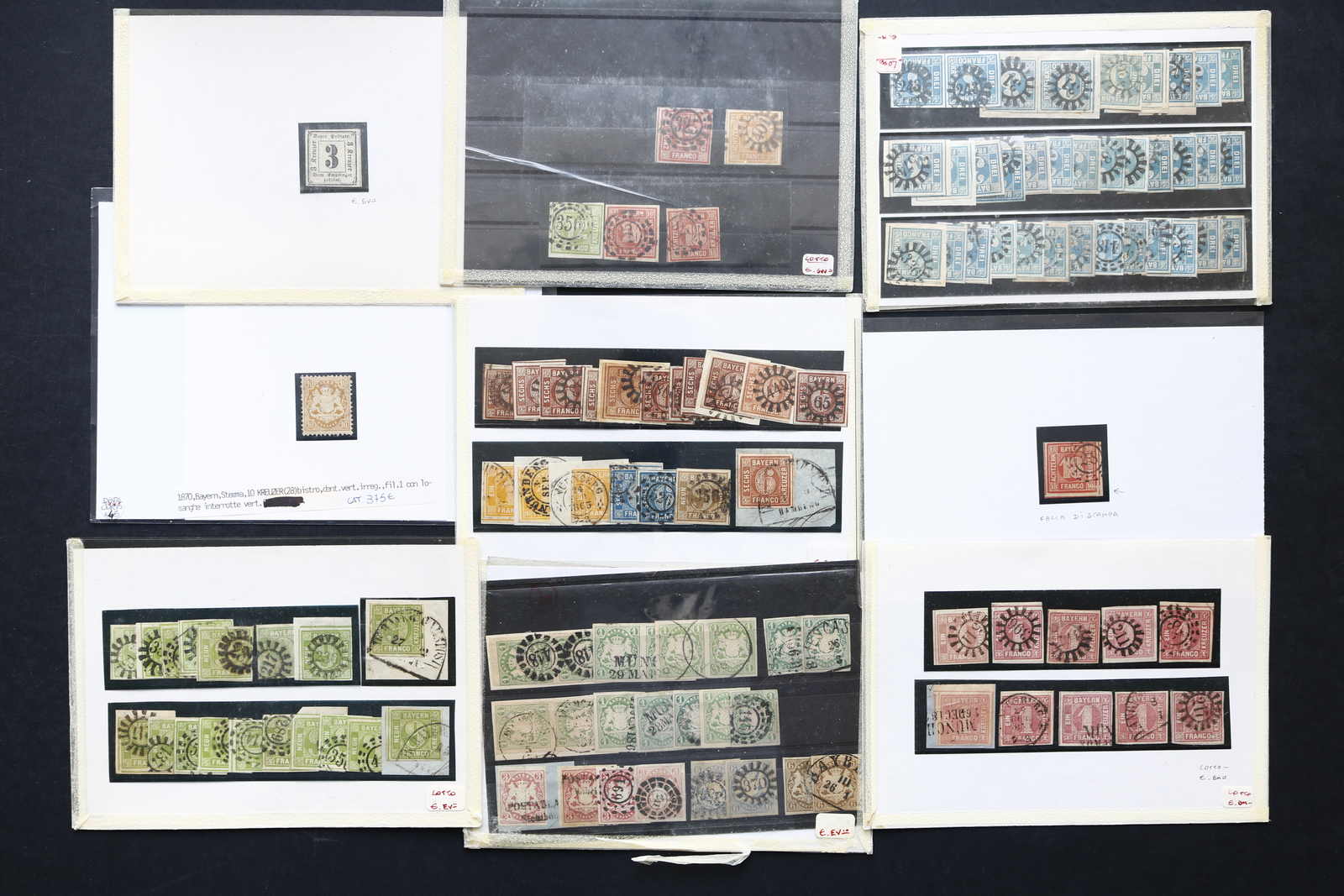 BAYERN: 1850/75, gemischter Dublettenbestand der Kreuzermarken, überwiegend gest. oder auf Briefst., wenige Werte auch postfr., dabei eine Mi-Nr. 8 II gest. mit Fotoattest Sem BPP, viele bessere Abstempelungen der geschl. und