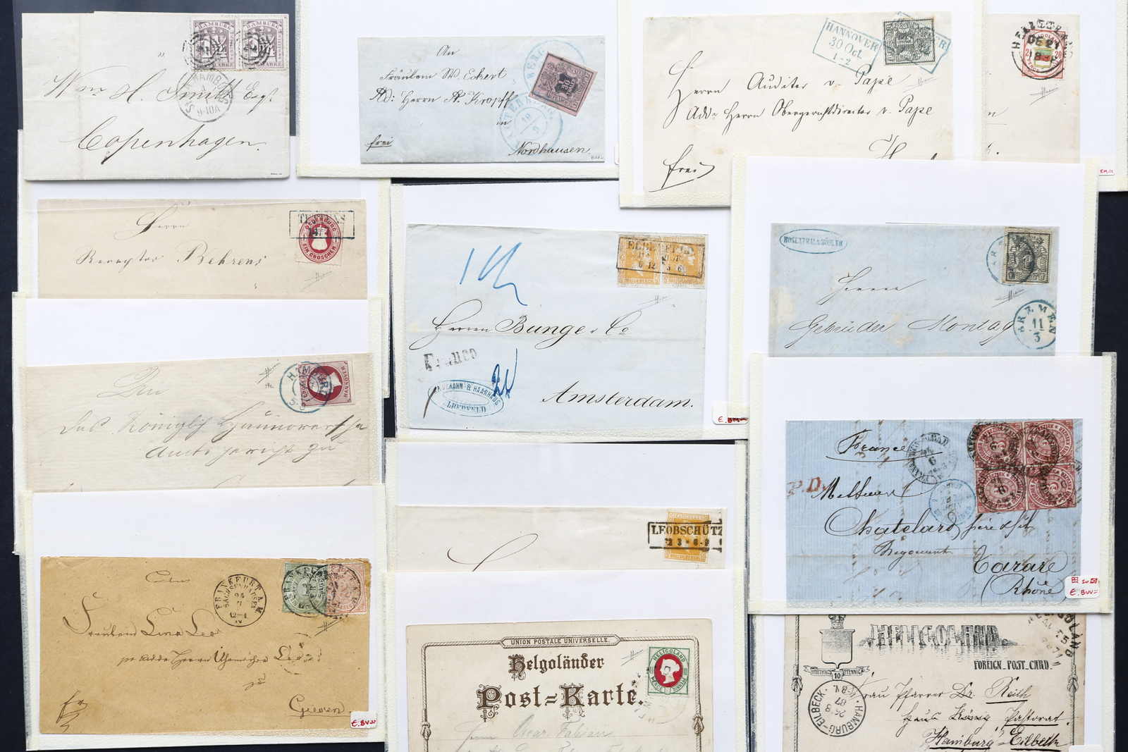Pfenniger und Brettl BPP, Braunschweig mit Mi-Nr. 1, 3, 10, Bremen Mi-Nr. 1 und 11, Hamburg Mi-Nr. 1, 7, 9, Hannover ab Mi-Nr. 1, mit 8 a, b, 13 a, 17 y und 22 y, Helgoland mit einigen gebr. Ganzsachen, Lübeck Mi-Nr. 3, Oldenburg Mi-Nr. 2/3 nach