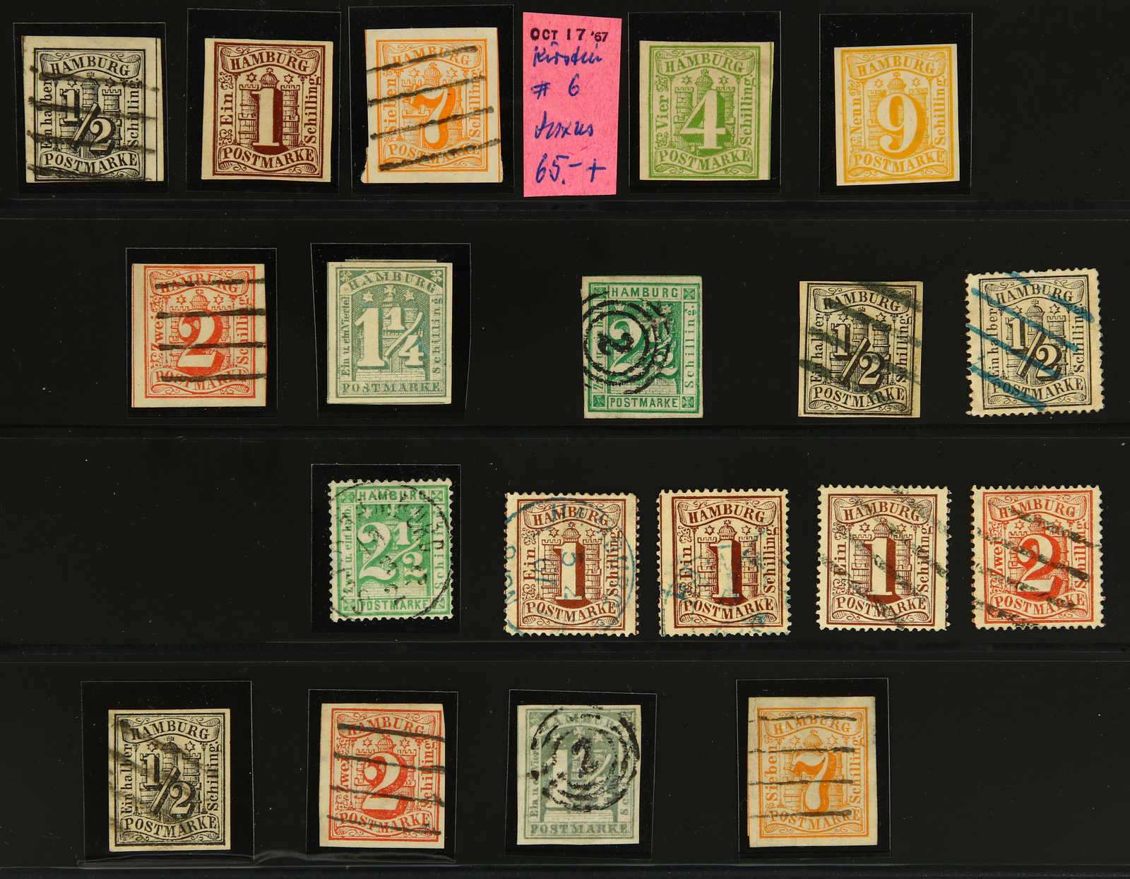 HAMBURG: 1859/67 ca., kleine interessante Partie auf einer Steckkarte in verschiedenen Erhaltungen (überwiegend gestempelt), aus altem Bestand in üblicher Sammlungsqualität, bitte besichtigen (Image)