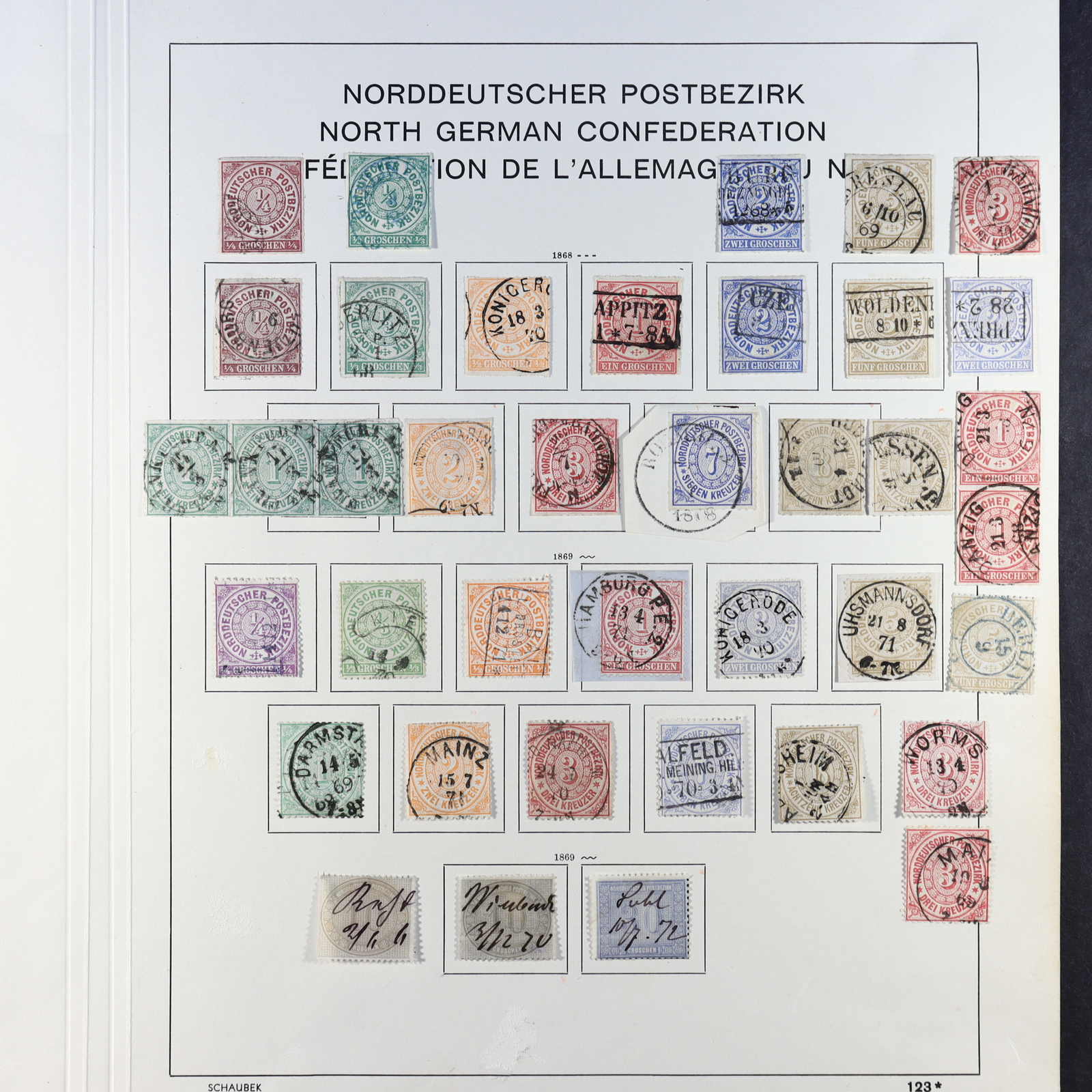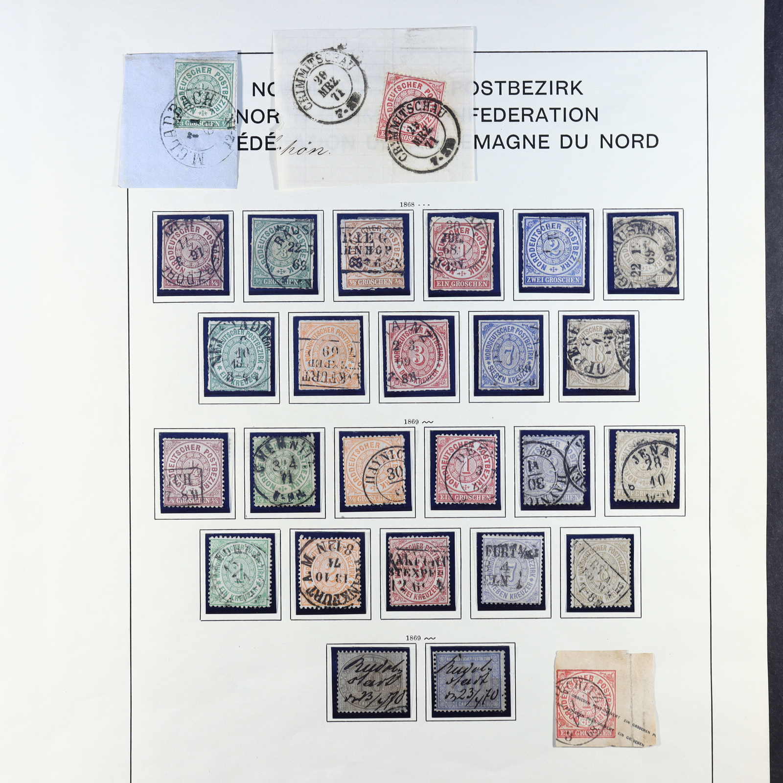 NDP: 1868/69, sauber gestempelte, komplette Sammlung auf zwei Vordruckblättern, Michel-Nr. 23 signiert Thier, im Anhang noch Dienst (nicht komplett) und etwas Elsaß, bitte besichtigen (Image) (imagea)