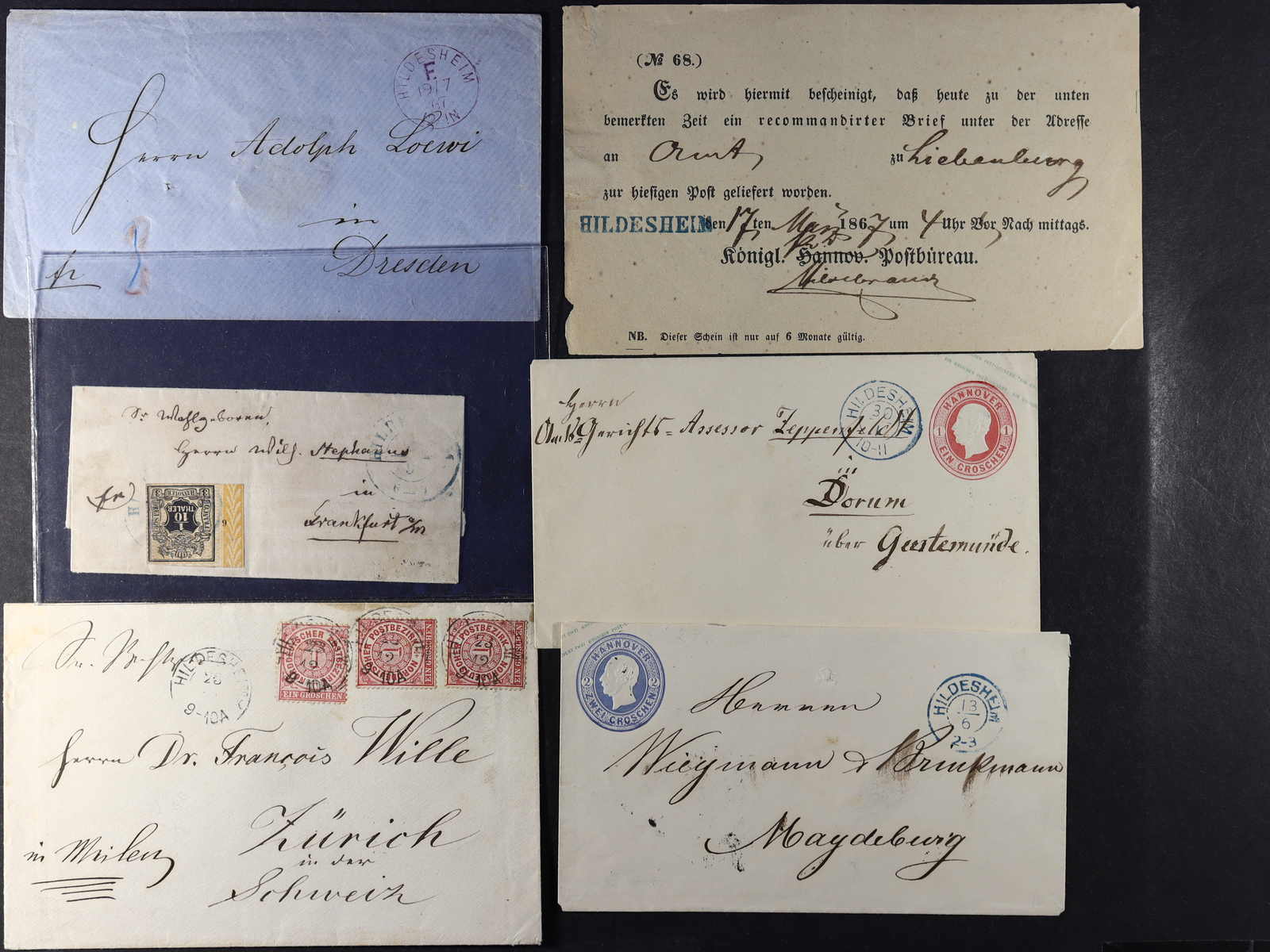 HANNOVER: 1852/70 ca., "Hildesheim" alter Belege-Bestand dieses Postortes, insgesamt über 30 Belege. Dabei viele ungewöhnliche Stücke und Stempel inkl. Bordürenbrief, seltene Belege aus der Preußen-Zeit mit 7-Stempeln und