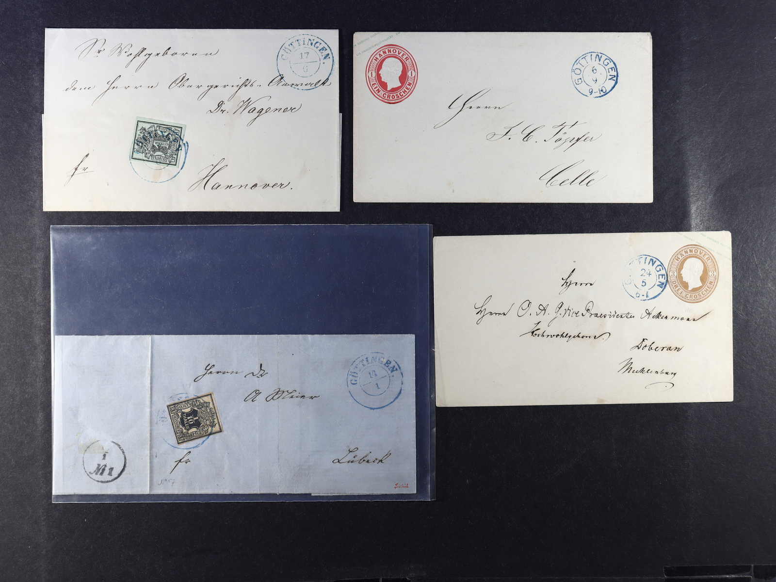 HANNOVER: 1853/68 ca., "Göttingen" alter Belege-Bestand dieses Postortes, 12 frankierte Briefe bzw. Ganzsachen, meist besonders attraktiv, zu dem ein unfrankierter sowie ein Vorphila-Brief (dieser vom "24.12"!). Enthalten sind