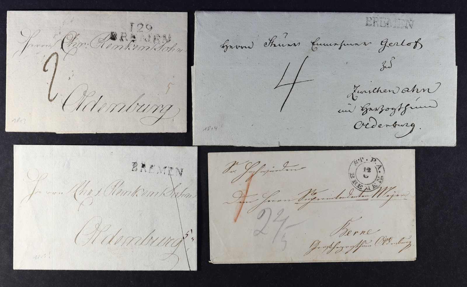 BREMEN: 1810/55 ca., Post nach Oldenburg, kleines aber hochinteressantes Spezialangebot aus alter Sammlung, viele verschiedene Taxen und Stempel ab der Franzosenzeit, einige Exemplare entstammen der Sammlung Dr. Marx (Image) (imagea)