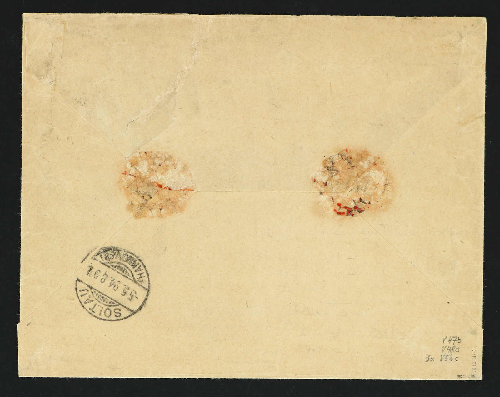 SHANGHAI 31.3.94", adressiert nach Soltau, rückseitig Ankunftsstp. vom 5.5.94, sign. Dr. Steuer, rückseitige Siegel entfernt, sonst gute Qualität (Dr. Steuer 640,-)