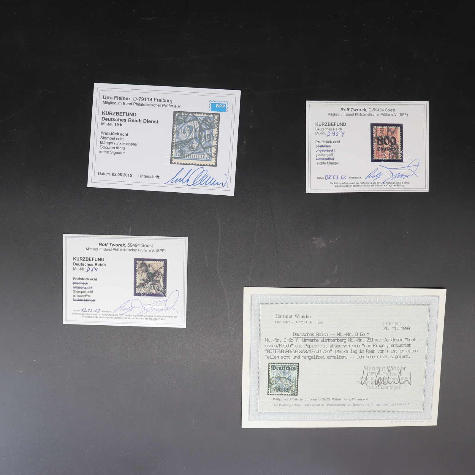 3162 gest., Briefst., Brief imageDEUTSCHES REICH: 1919/23, Inflation, gemischter Posten, überwiegend gest., einige Werte auf Briefst. oder Brief, dabei u.a. Mi-Nr. 199 b gest., 154 I b gest., 209 Wb im waager. Paar auf Brief, 222 d gest., 254 d gest., 261 b im senkr. 5er-Streifen gest. und 319 Wb gest. mit Fotoattest Kowollik BPP mit leichten Einschränkungen, alle Marken und Belege sign., hoher Katalogwert, überwiegend gute Qualität (Image) (imagea) (imageb) (imagec) (imaged) (imagee) (imagef) (imageg) (imageh) (imagei) (imagej) (imagek) (imagel) (imagem) (imagen) (imageo) (imagep)