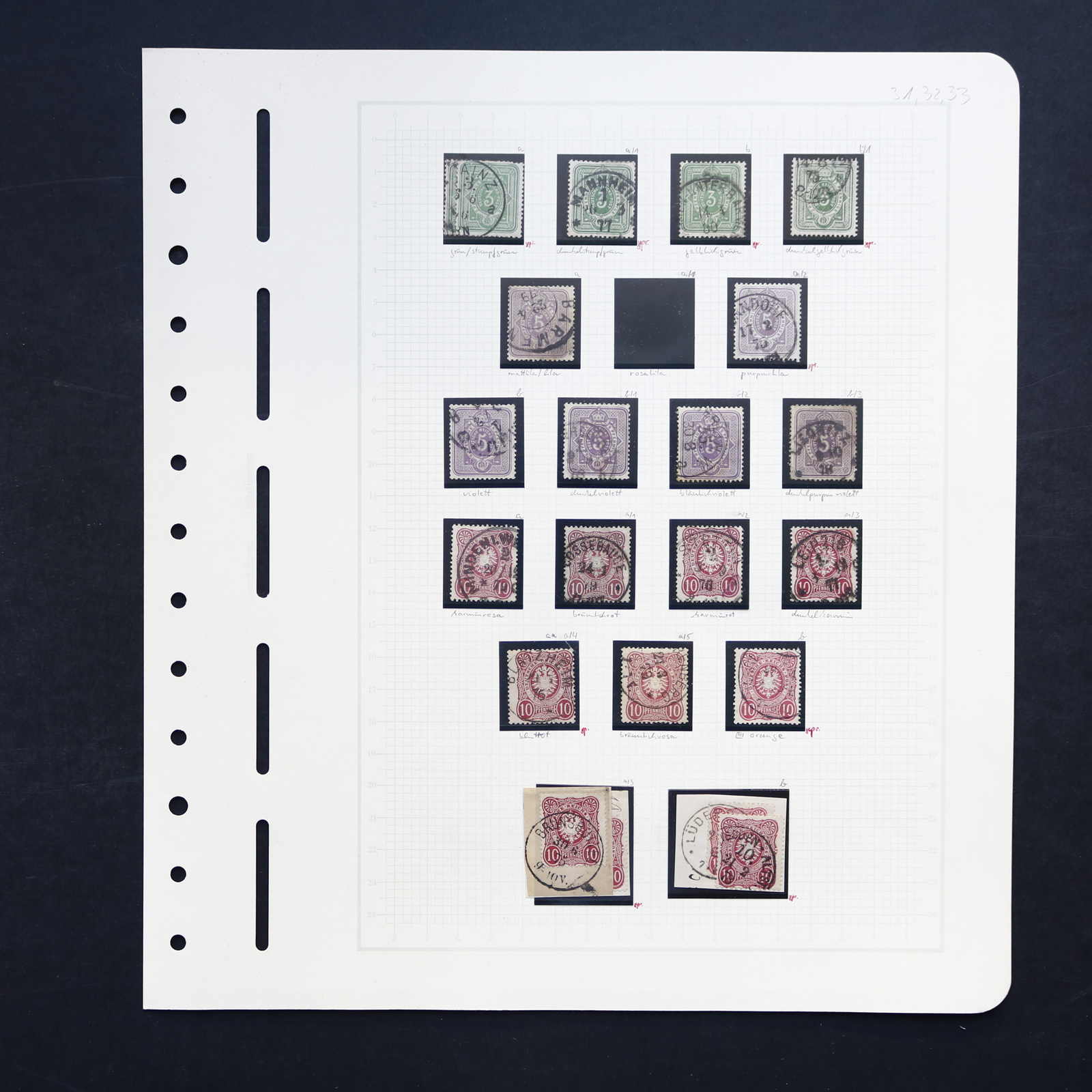 3169 gest., Briefst. imageDEUTSCHES REICH: 1875/79, gestempelte Sammlung der Ausgaben "Pfennige" und 2 M. Innendienst, spezialisiert nach Farben und schmalen/breiten Marken zusammengetragen, vieles geprüft, dabei bessere Werte wie 33 aa, 35 b/c, 36 b (Fotobefund Wiegand BPP) sowie einige geprüfte Plattenfehler, hoher Katalogwert, auf Albenseiten (Image) (imagea) (imageb) (imagec) (imaged) (imagee)