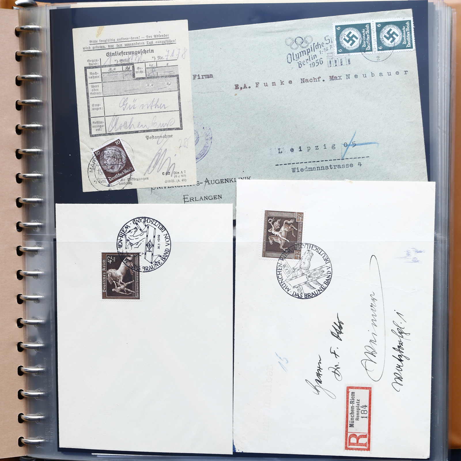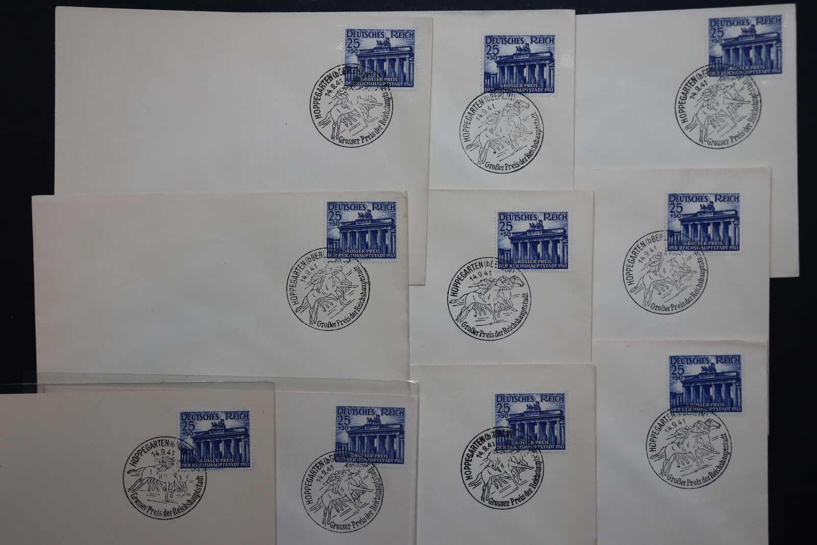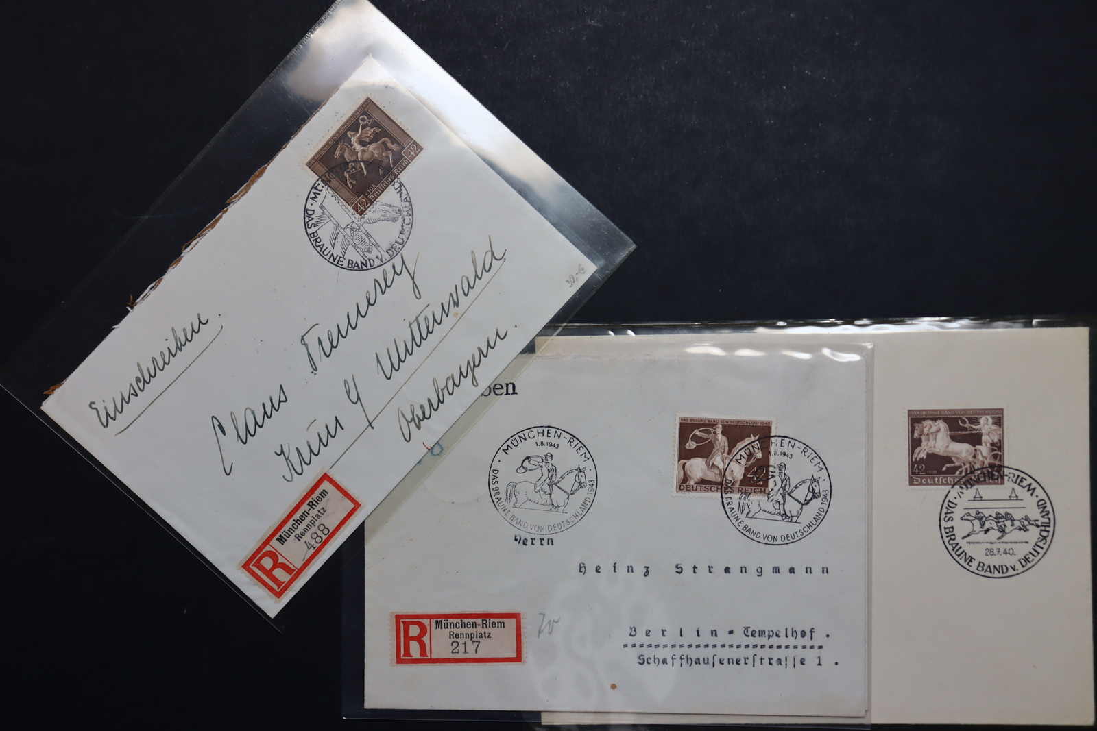 3202 gest., Briefst., Brief imageDEUTSCHES REICH: 1937/43, Lot mit Ausgaben III. Reich, dabei Bl. 11 gest., Mi-Nr. 686-88 2mal je auf Sonderkarte, 747 auf Blankoumschlag, 571 x und 854 je auf R-Brief mit Sonderstempel und -Einschreibzettel sowie 10mal 803 je auf Blankoumschlag mit SSt., gute Qualität (Image) (imagea) (imageb)