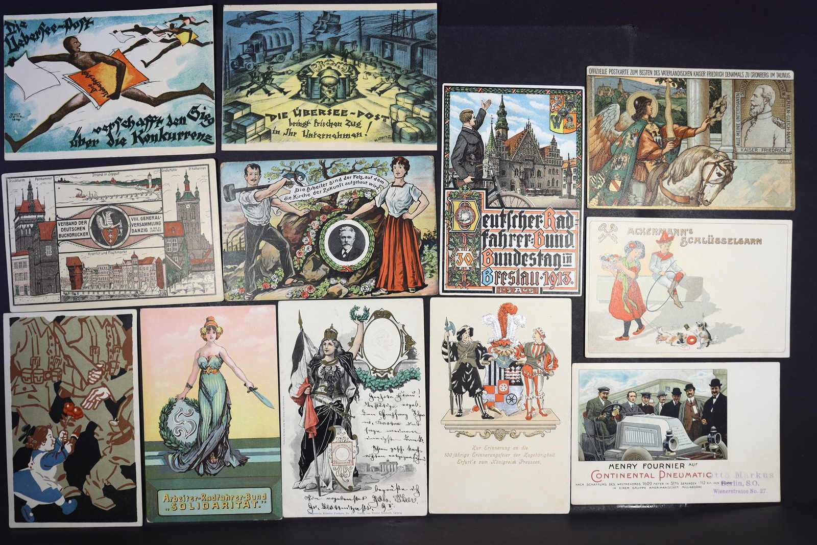 3209 Brief imageDEUTSCHES REICH: 1898/1937, kl. Posten Anlass-, Künstler- und Werbekarten, gebr. und ungebr., teils als Privatganzsache ausgegeben, dabei Karten im Jugendstil und andere seltene Motive, ges. ca. 35 Karten, überwiegend gute Qualität, in dieser Reichhaltigkeit selten angeboten (Image) (imagea) (imageb) (imagec) (imaged) (imagee) (imagef)