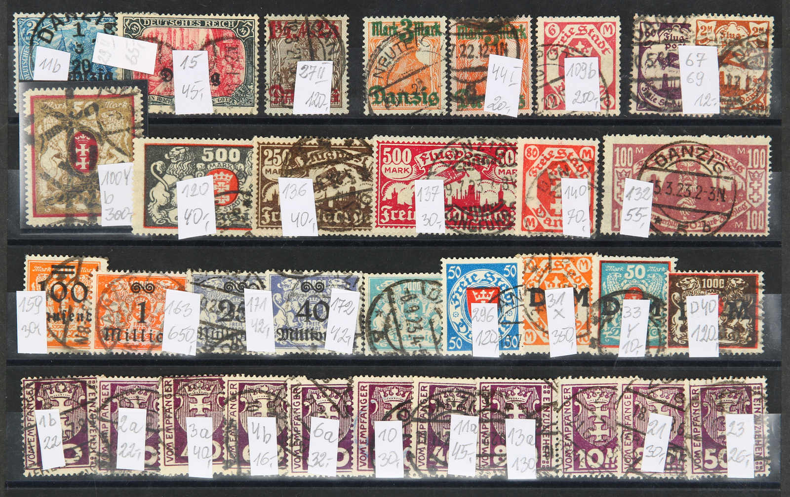 DANZIG: 1920/37, kl. gemischter Dublettenposten, postfr., ungebr. und gest., dabei bessere Einzelwerte mit echten Abstempelungen und Gefälligkeitsstp., u.a. Einzelwerte der kleinen Innendienst- und Inflaausgaben, dazu Dienst- und