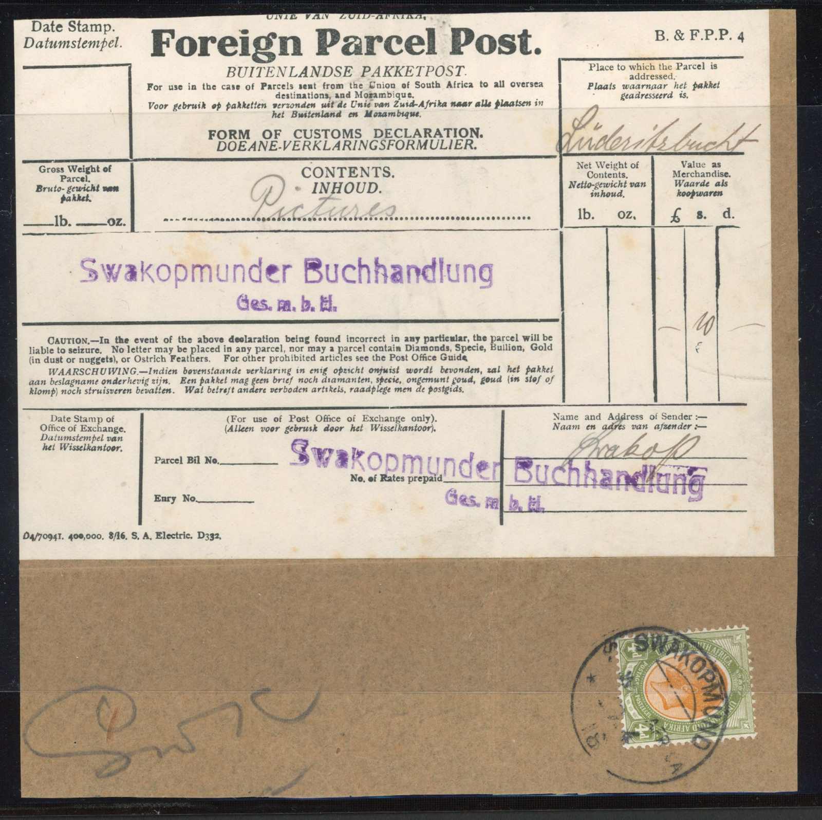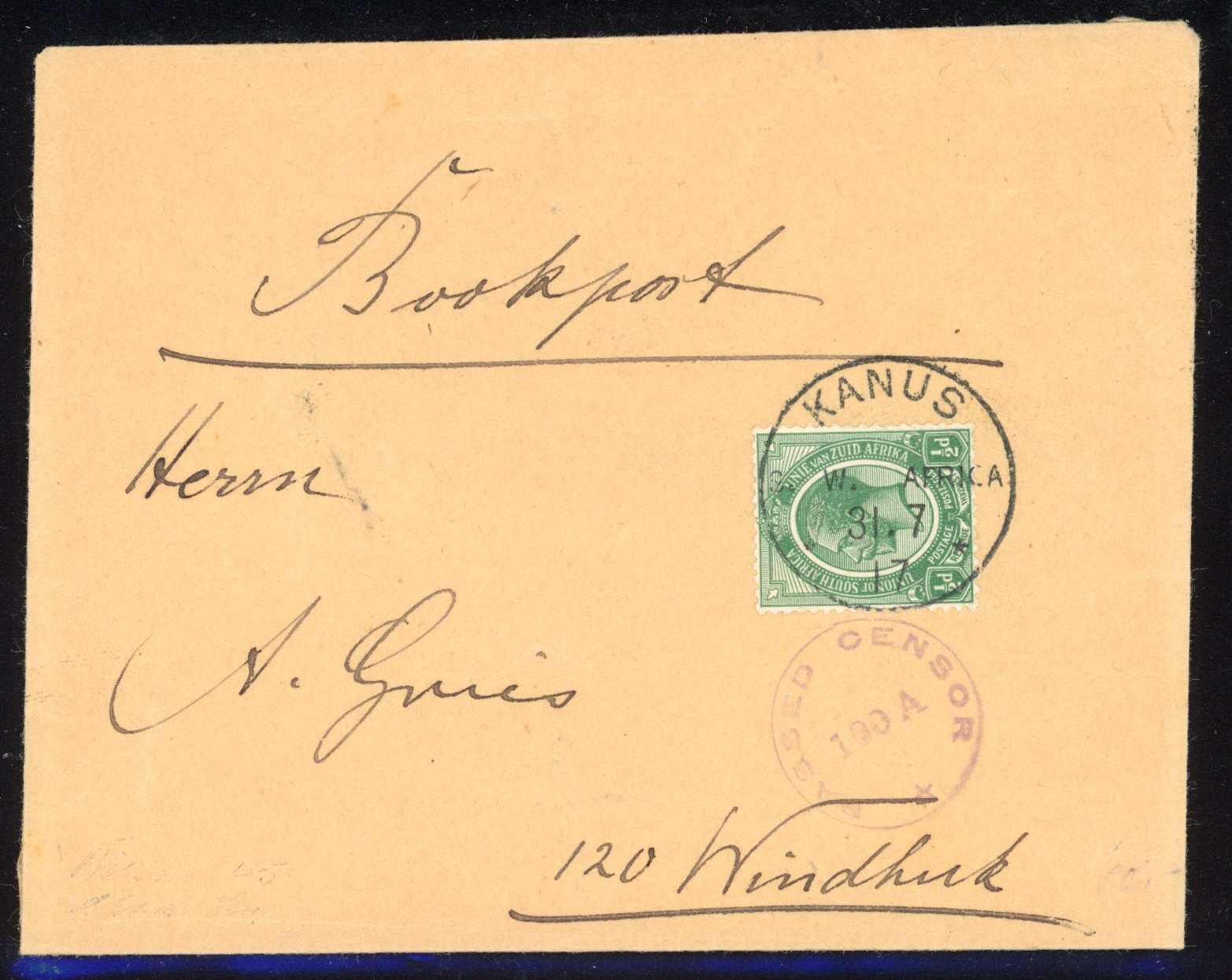DEUTSCH-SÜDWESTAFRIKA MANDAT STEMPEL: 1917/18, 4 Belege mit aptierten deutschen Stempeln auf südafrikanischen Frankaturen, dabei "KANUS S.W.AFRICA 31.7.17" auf zensierter Bookpost nach Windhuk und dreimal "SWAKOPMUND S.W.AFRICA",