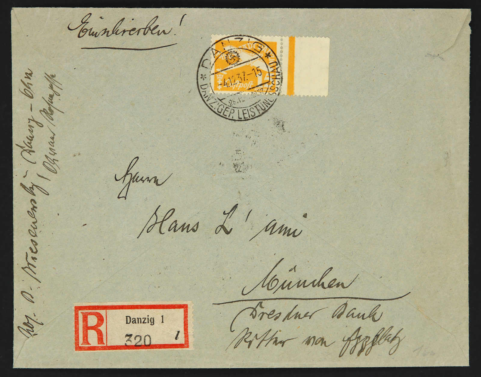 Mehrfachfrankaturen, Einschreiben, Express- und Luftpostbriefe sowie ein Telegramm aus Tiegenhof 1924 mit einer getrennten Telegraphenmarke, dazu kleiner Bildband "Das sehenswerte Danzig" aus 1932, ges. ca. 56 Belege, hoher Katalogwert, überwiegend