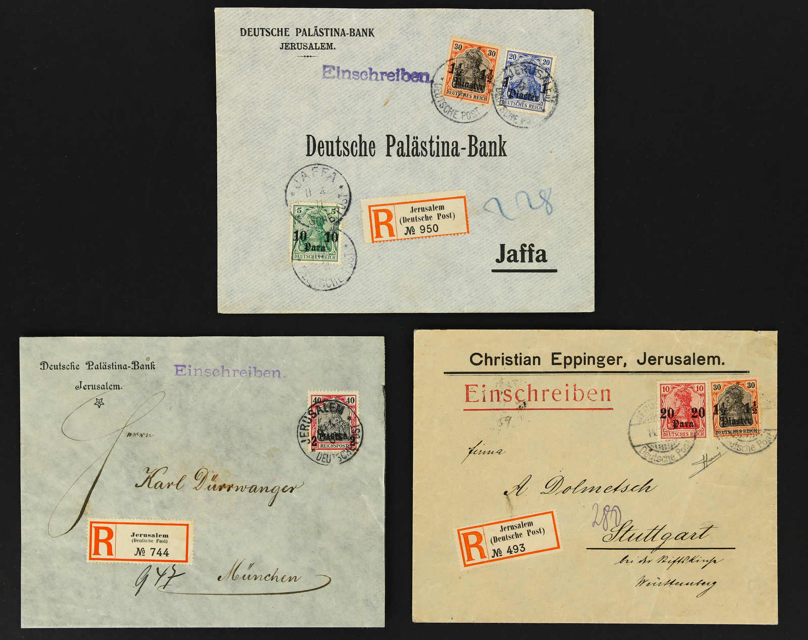 DEUTSCHE POST TÜRKEI: 1903/11, drei R-Briefe von Jerusalem nach Deutschland bzw. Jaffa (Image) (imagea)