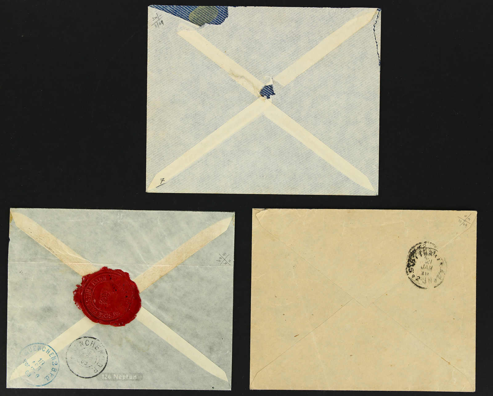 Österreich, hier mit Nachporto belastet und ein R-Brief, frankiert mit Bl. 3, entwertet mit SSt. und Zusatzfr. Mi-Nr 299, adressiert nach München mit Ankunftsstp., 3 saubere Belege in guter Qualität (Image) (imagea)