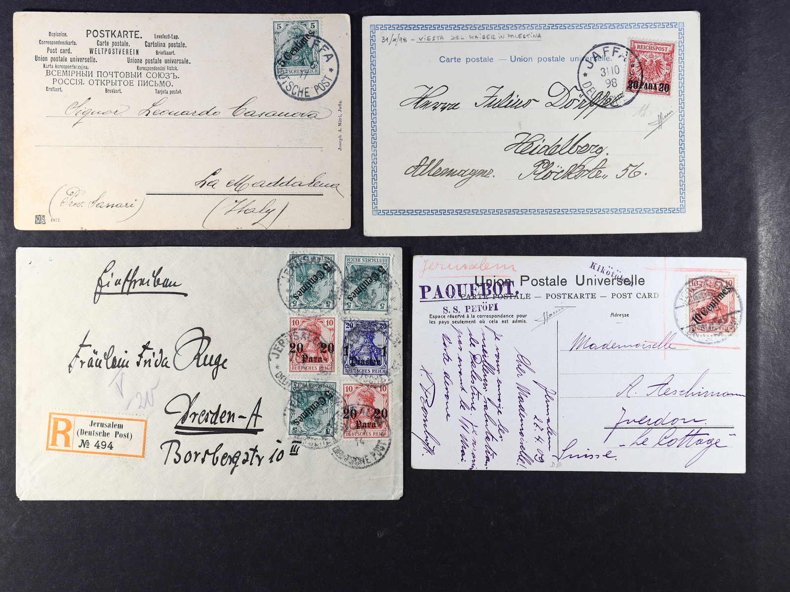 DEUTSCHE POST TÜRKEI / PALÄSTINA: 1898/1912, postgeschichtliche Zusammenstellung von zehn Belegen, dabei ein Streifband, enthalten Jerusalem & Jaffa, Destinationen in Italien, Schweiz und Deutschland (Image) (imagea)