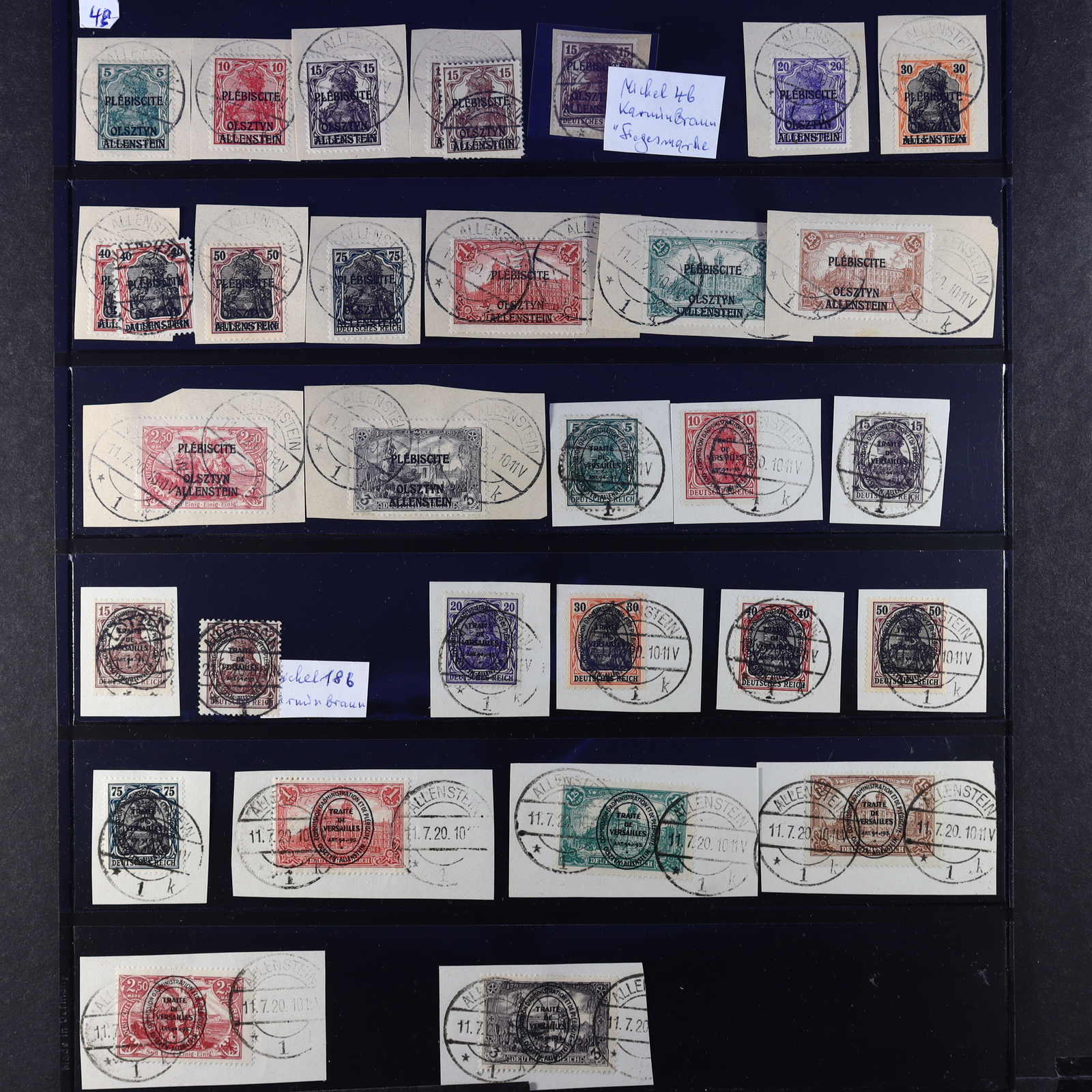 ALLENSTEIN: 1920, gest. Sammlung in den Hauptnummern kpl., überwiegend auf Briefstück, dazu Mi-Nr. 4 b und 18 b gest., aber nicht geprüft, einige Werte doppelt, hoher Katalogwert, saubere Qualität (Image)