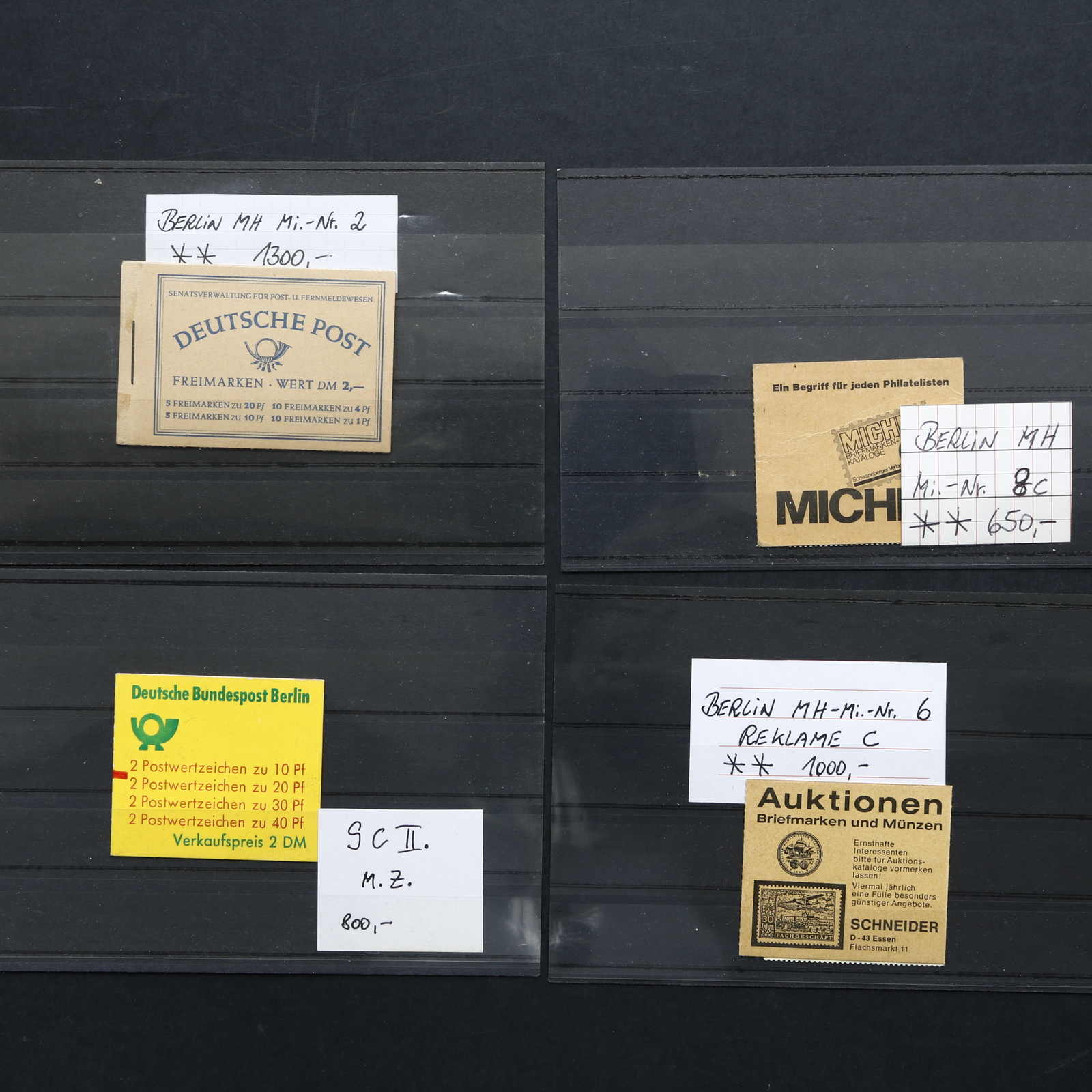 BERLIN: 1952/74, Markenheftchen, postfrischer Posten von besseren Heftchen, dabei MH 2, 6 c, 8 c und 9 c II MZ, alle Heftchenblätter postfrisch, die Heftchendeckel mit leichten Einschränkungen, sonst saubere Qualität (ME 3.750,-) (Image)